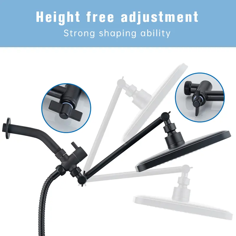 ④ Upgrade Adjustable Shower Extension Arm:Height and Angle adjustable shower arm allows you to enjoy a large shower experience perpendicular to the whole body.