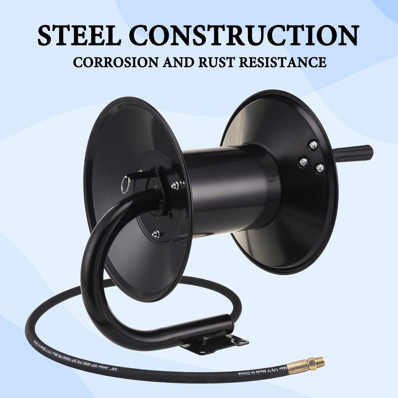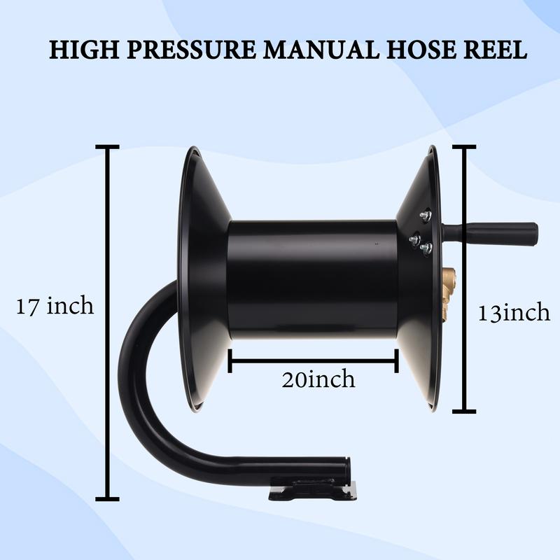 ·Manual Crank Power Washer Hose Reel: The manual crank on this reel allows for easy winding and unwinding of your pressure washer hose, making it easy to use and store when not in use.