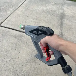 This foam cannon features a unique dual-head connector with a two-way valve. It allows seamless switching between foam and water modes, saving time and effort. The kit includes a pressure washer gun, dual connector, and five nozzles.