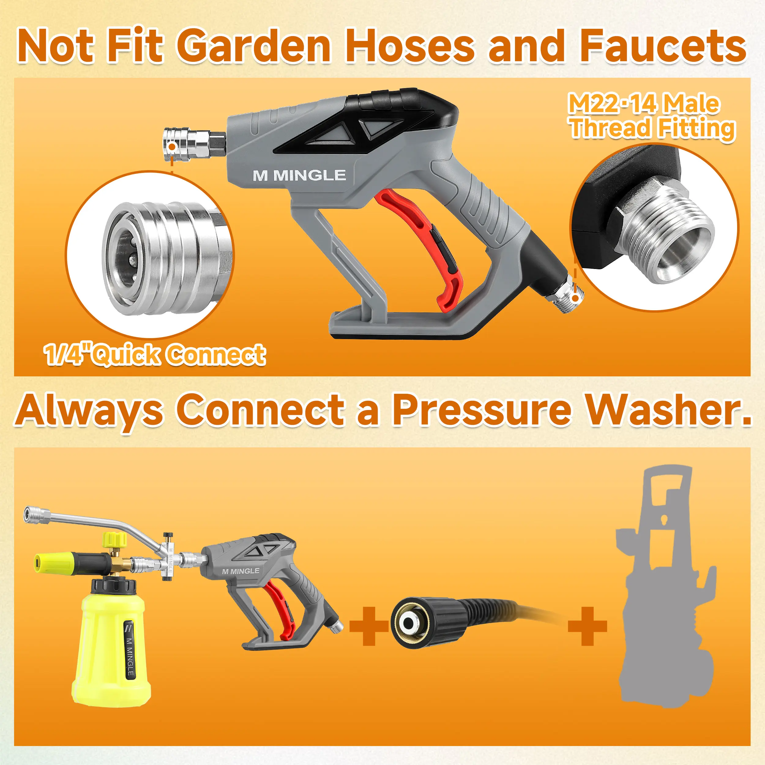 ·Power Washer Wand: Supports up to 4000 PSI, featuring an ergonomic handle design for easy operation. The short pressure washer wand effortlessly cleans vehicles, roofs, driveways, and stubborn stains, making your cleaning tasks more efficient.