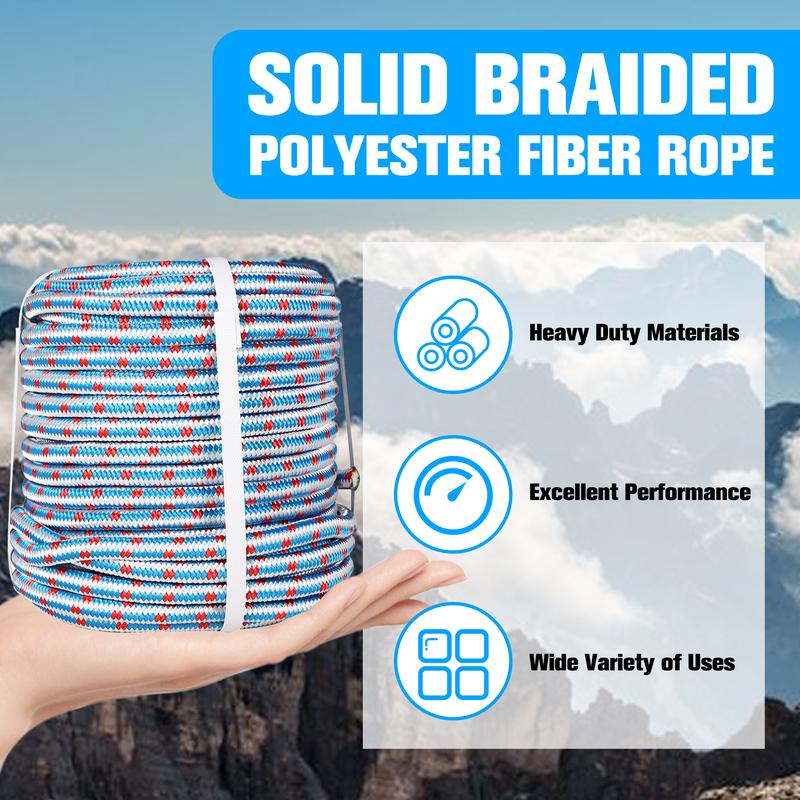 ยทWear resistant and durable, not harden in case of water. The 1/2 inch 16 braid polyester rope is not limited by the weather, and it can be used normally even in bad weather.