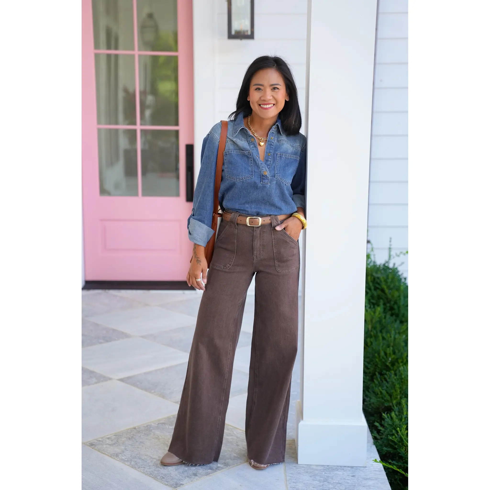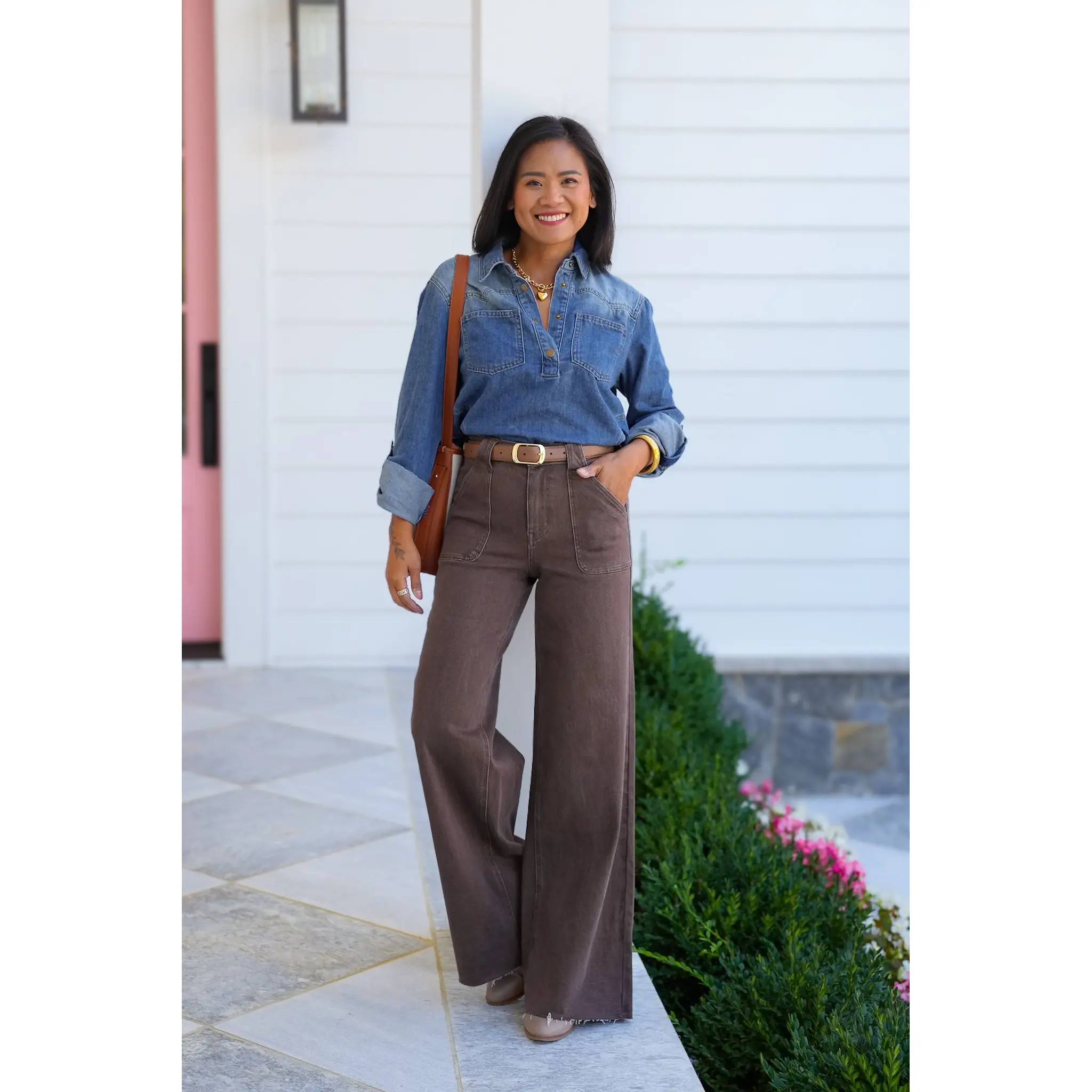 These jeans combine vintage style with modern comfort, thanks to Judy Blue’s signature premium stretch. You’ll love how the fabric moves with you while still holding its structure, giving you a flawless fit from morning to night. The wide leg silhouette is flattering on all body types, and the front patch pockets make them stand out from your classic denim. Dress them up with a fitted blouse and wedges or keep it casual with sneakers and a graphic tee.