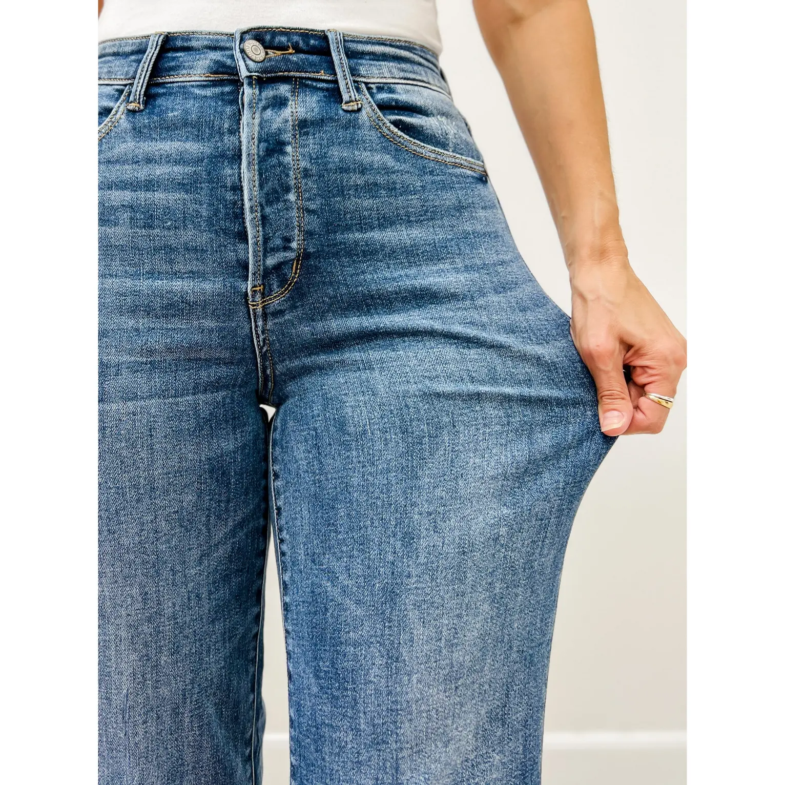 Judy Blue coves through again! Took a chance on a pair for my + size daughter. They fit her perfectly and look great! I have several pair for myself and love them all.