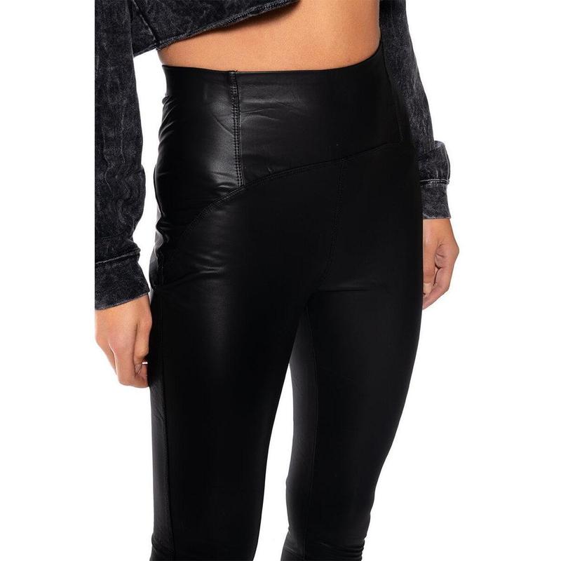 Everything you could ever need and more, the AKIRA Label Rio High Rise Legging With 4 Way Stretch are the perfect faux leather leggings to get you through fall and winter. These stretchy leggings are complete with an elasticated waistband, a high rise fit, buttery soft faux leather fabrication, and a bodycon ankle length silhouette. Style them with a slouchy sweater and thigh high boots for a stylish wintery look. - 55% Polyester 45% Polyurethane Complete your look and shop the rest of the AKIRA Essentials Collection here! (all measurements approximate from size small) - 10” Rise, 30" Inseam - Model height is 5'9" - Imported Product ID: 214227
