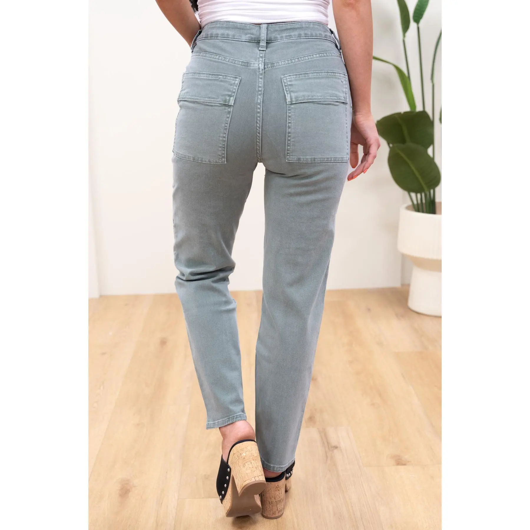 Love, love these pants. Exactly as described, super comfy and well-made. They are stretchy and fit perfect. The color is a great green and are perfect for spring.