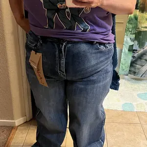 These are such cute jeans, great length for me at 5’8” and a great dark denim color. Very stretchy jegging material but you can’t really tell by looking at them. Perfect wide leg, I would def buy those again!