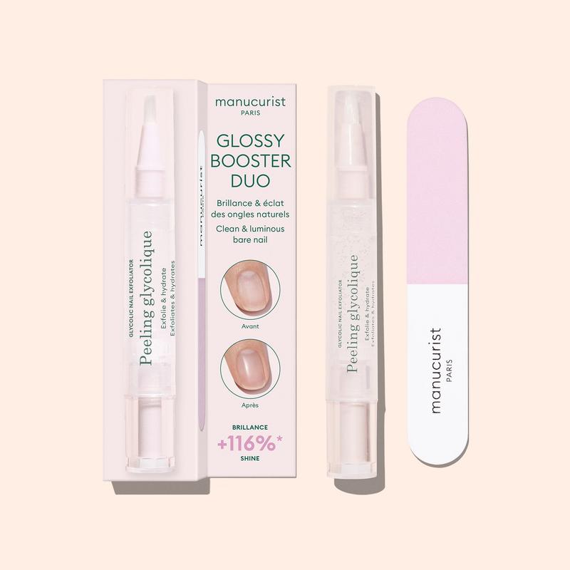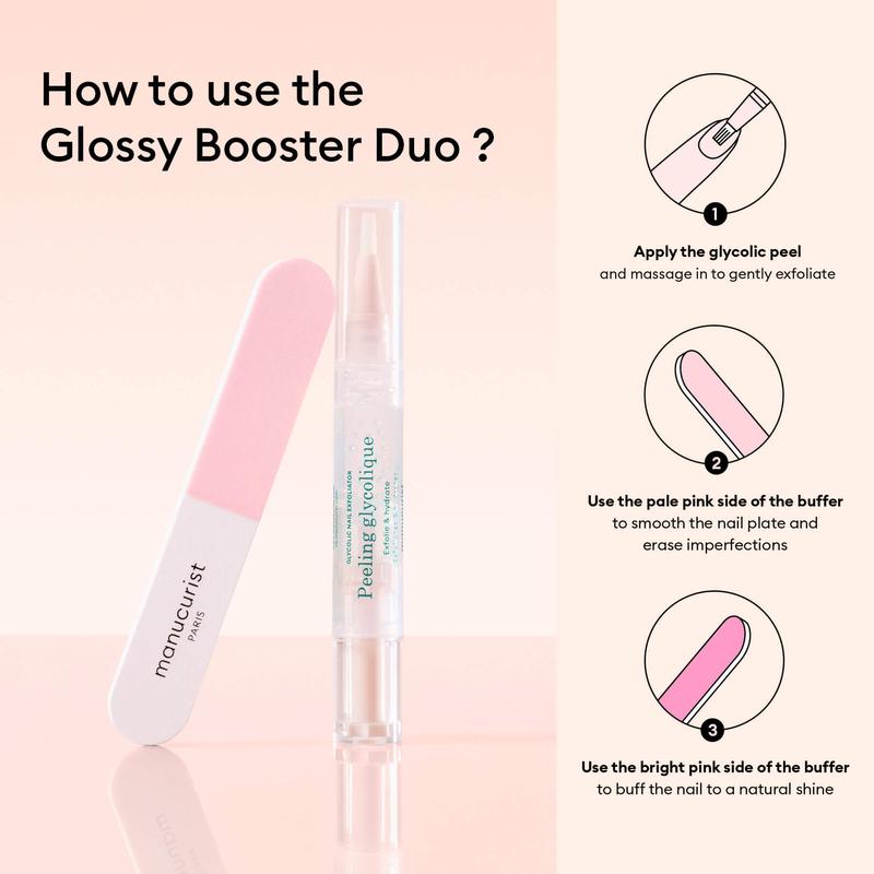 Manucurist Glossy Booster Duo Nail Care Kit for Damaged, Brittle & Ridged Nails - Clean, Non-Toxic Exfoliating Peel & Buffer for Natural, High-Shine Nails Without Polish - Instant, Long-Lasting Shine & Strengthening Routine