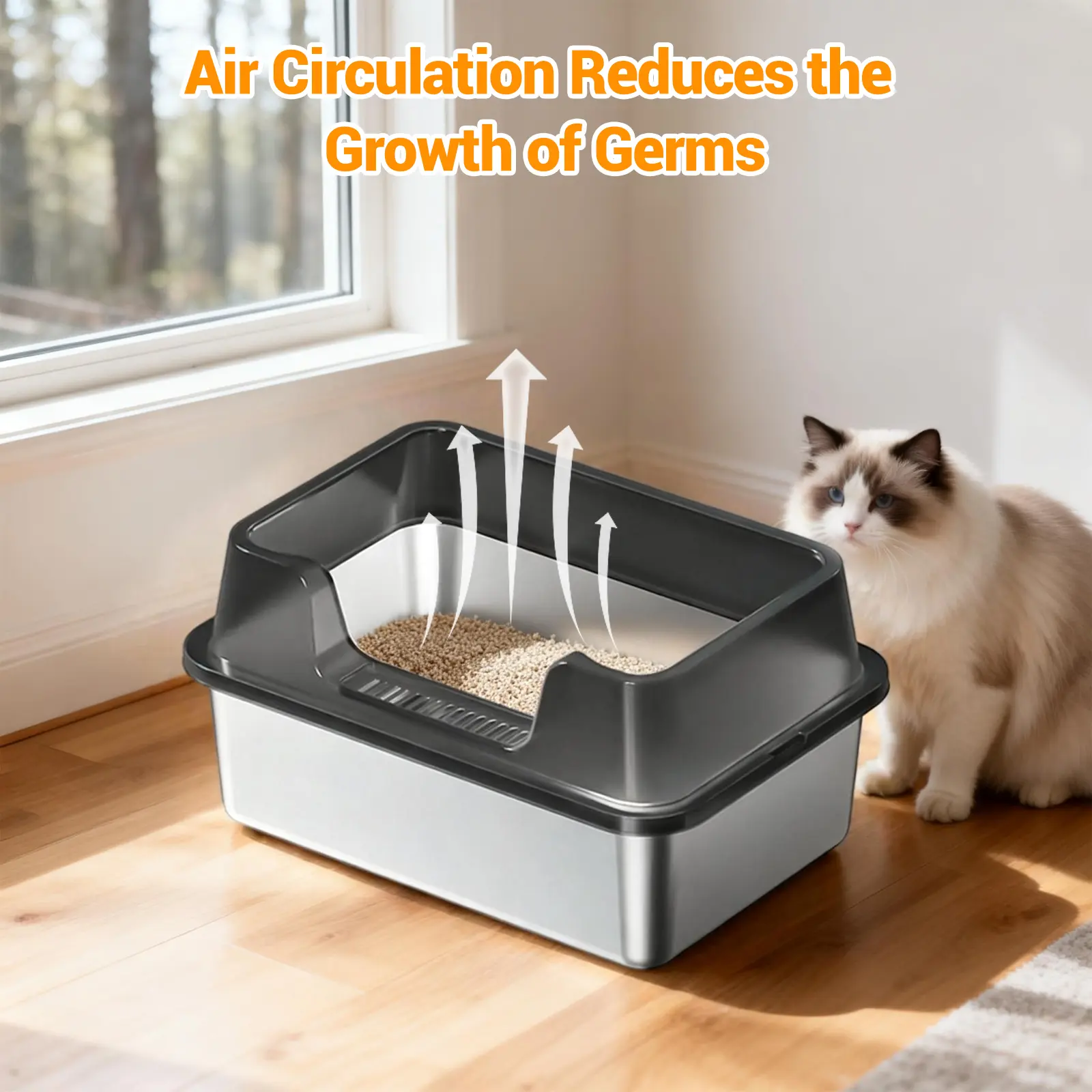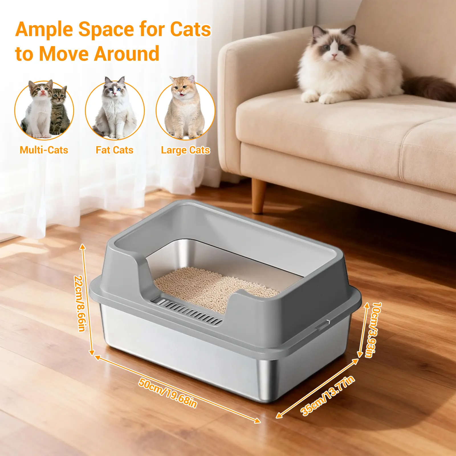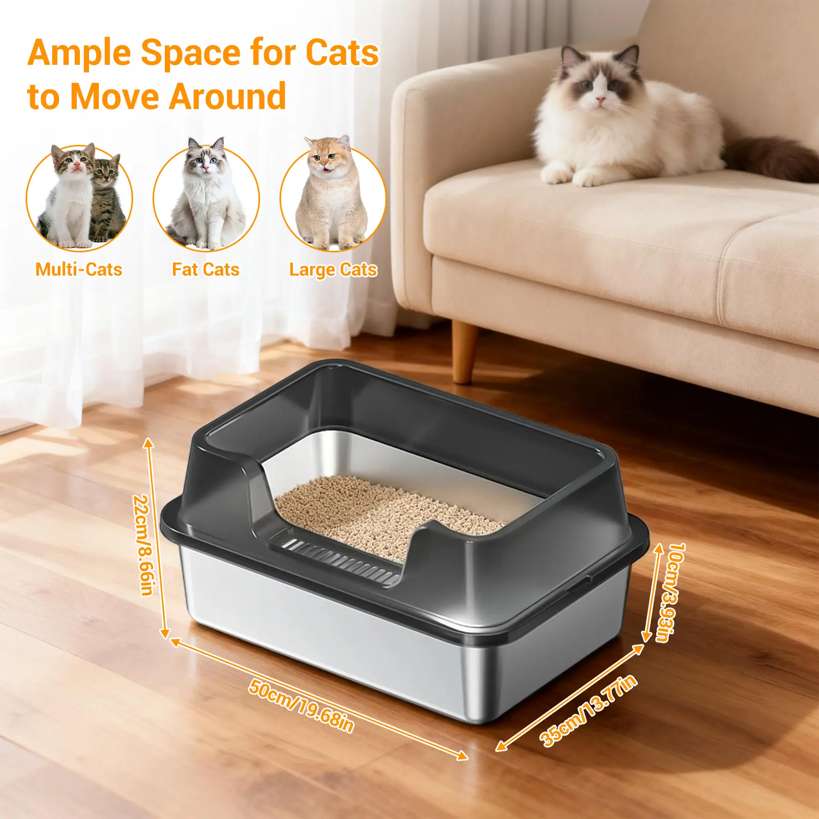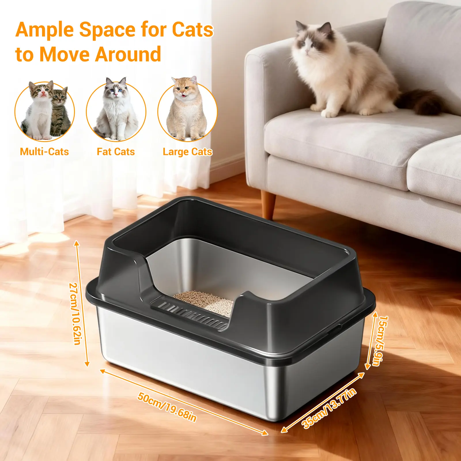 ·1.Superior Stainless Steel Litter Box: Resistant to rust, scratches, and odors, providing a hygienic and long-lasting solution for your cat’s needs.