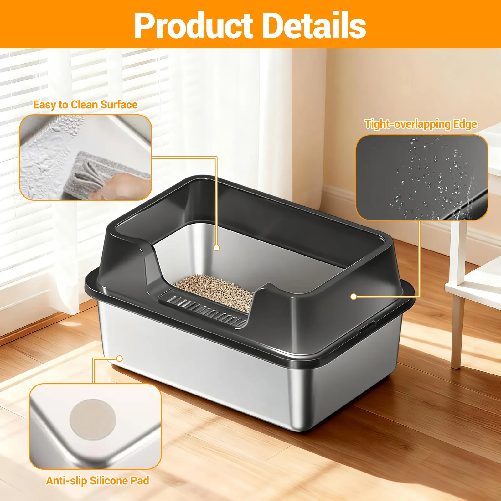 ·2.Tall, Removable High Walls: Effectively contain litter and prevent urine leaks, keeping floors clean—ideal for high-peeing or energetic cats.