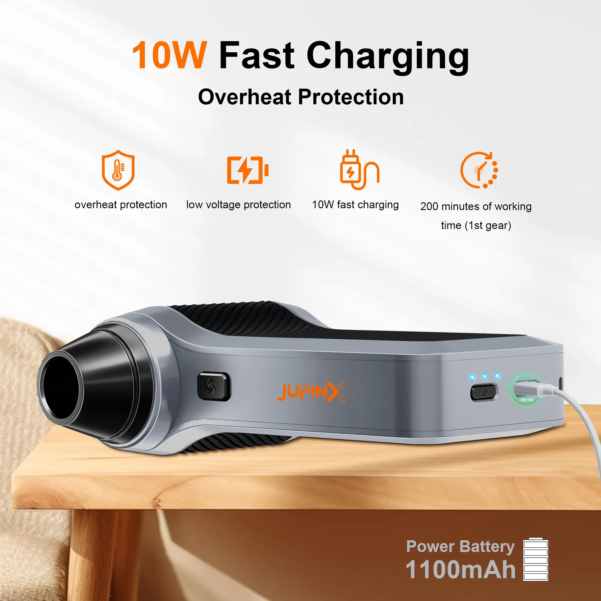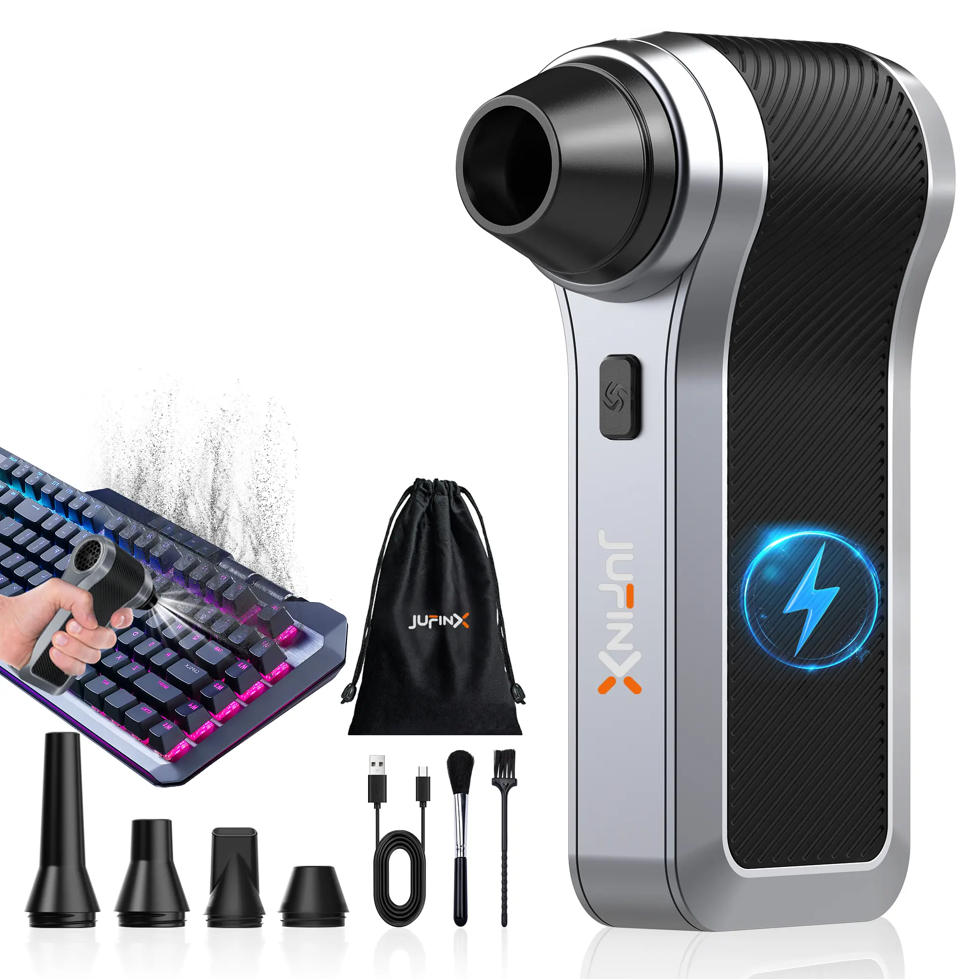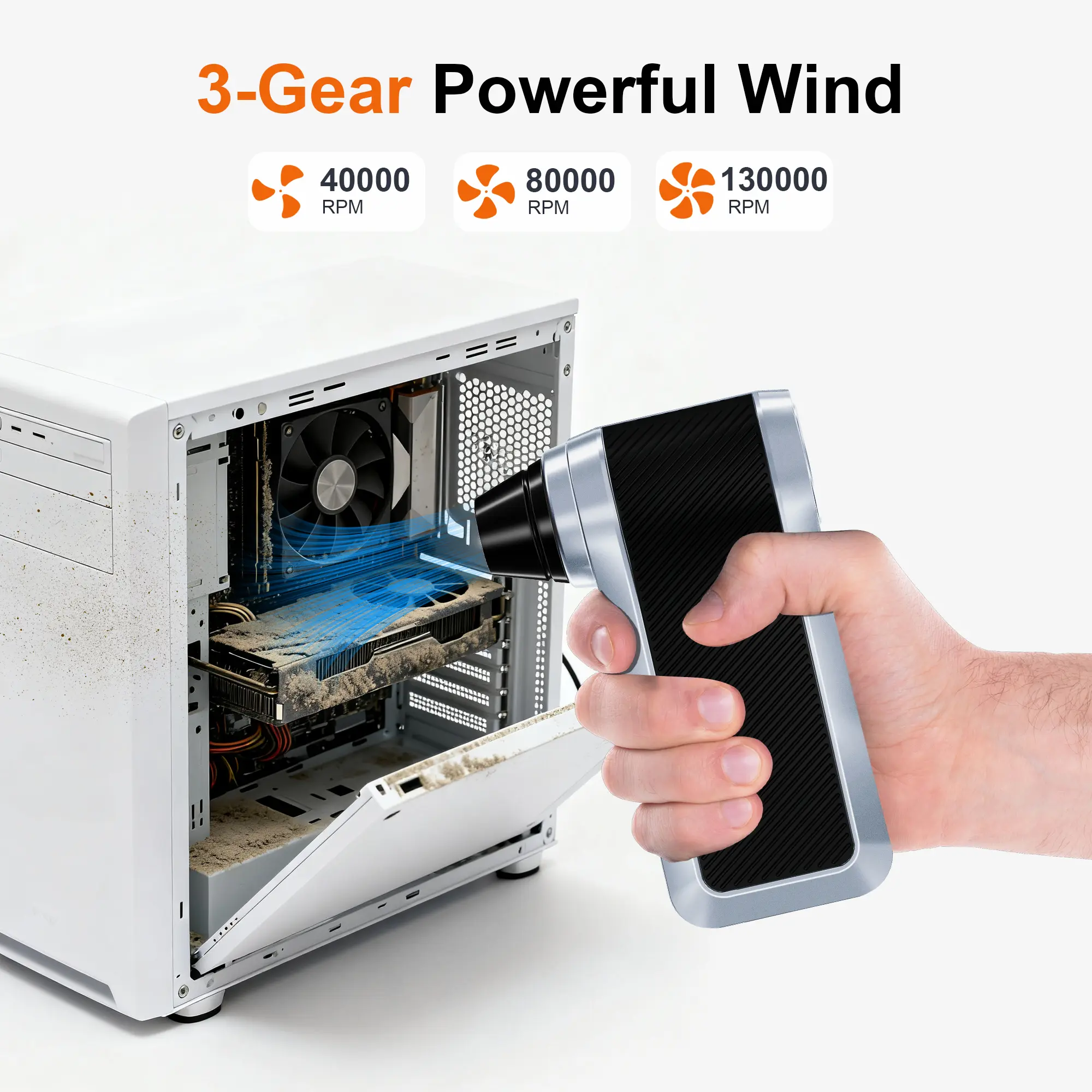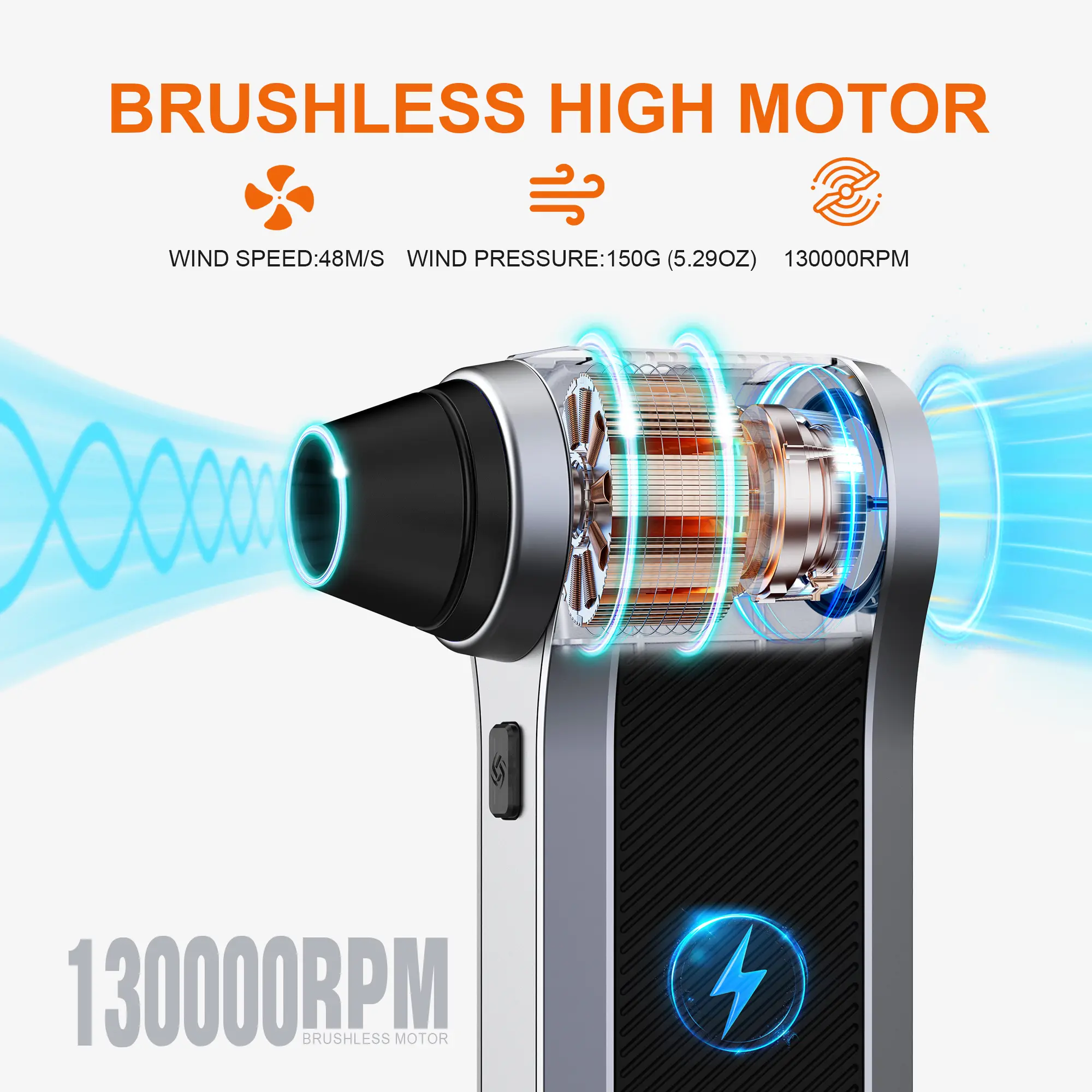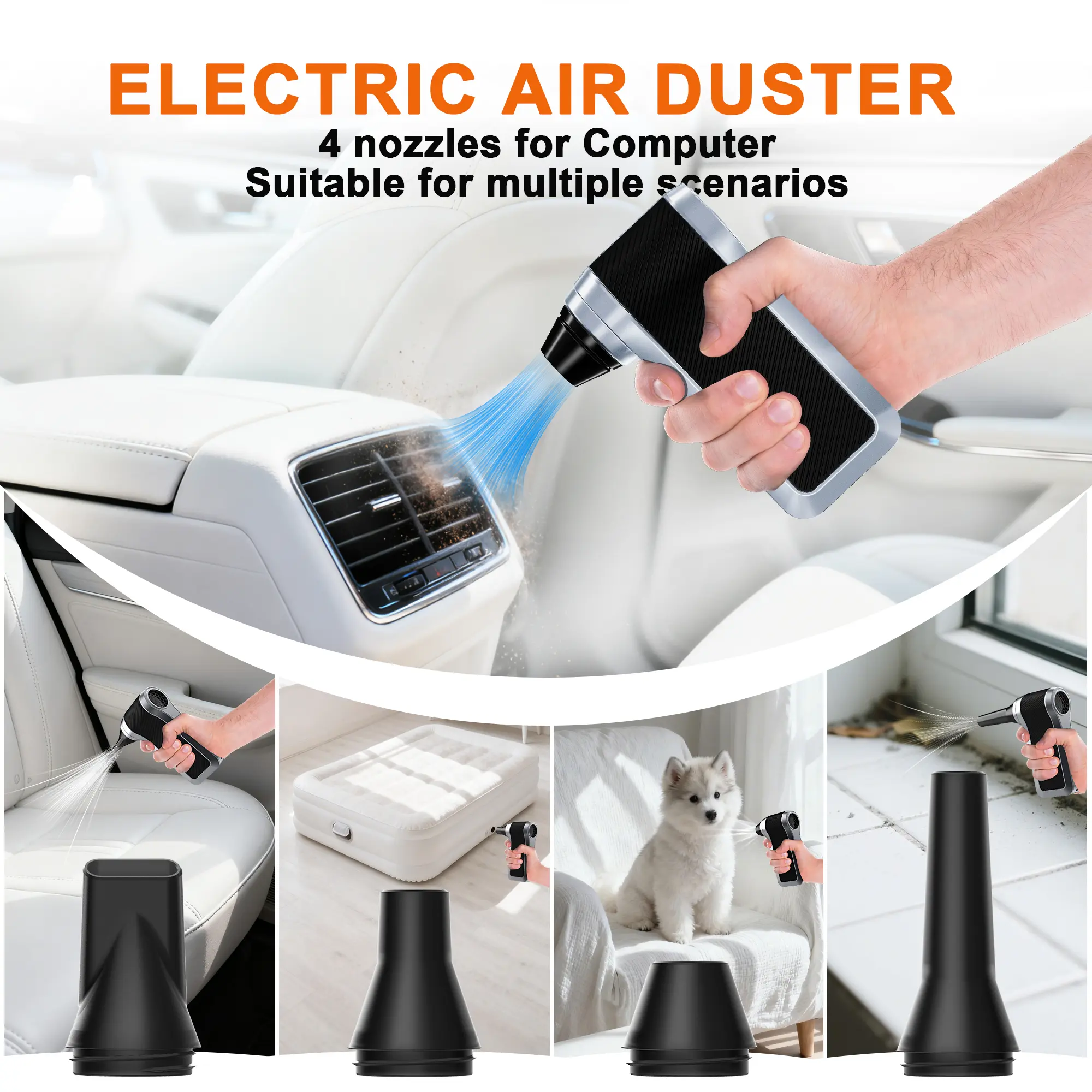 The 130,000 RPM High-Speed Air Duster is a versatile tool for electronics, auto, and home use. It features 4 precision nozzles for efficient cleaning. The Type-C fast charge ensures quick recharging. Comes with a pro brush set for added cleaning power. Includes a safety lanyard for secure use. The luxury storage bag keeps your duster organized. Perfect for multi-purpose cleaning needs.