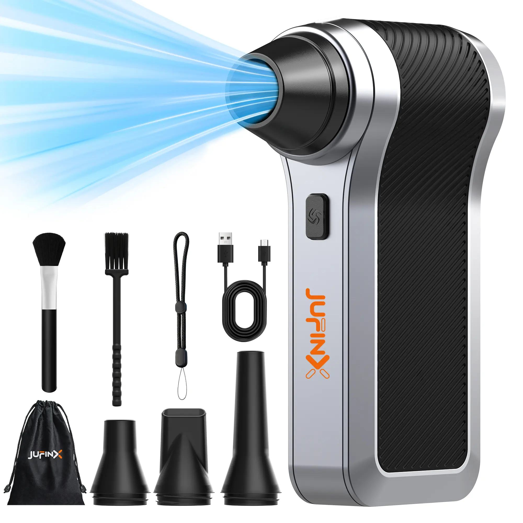 This air duster is multi-purpose, suitable for electronics, auto, and home use. The 4 precision nozzles and pro brush set make it an effective cleaning tool. The safety lanyard ensures secure use, while the luxury storage bag keeps it organized. Ideal for maintaining cleanliness in various settings.