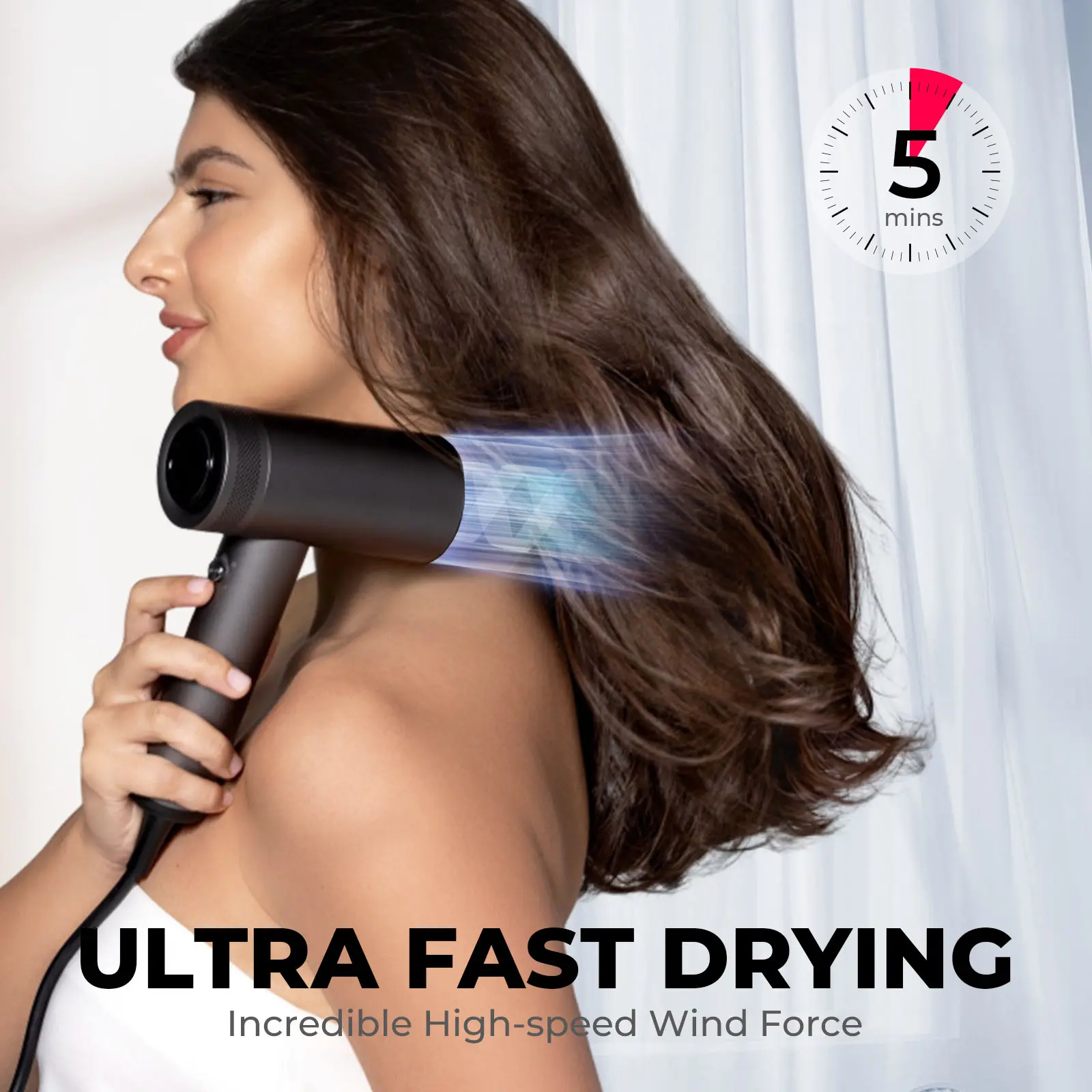Omg this is the best hair dryer!! Wash my hair and use this hairdryer and time myself to see how fast!! It took me about 5 minutes or less to dry my long hair!! 100% recommend this product!!