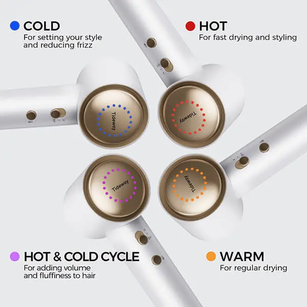 Choose from four temperature settings: Red (Hot), Orange (Warm), Blue (Cold), and Red Orange Blue alternating. These settings cater to various hair types and styling needs, ensuring quick and even drying.