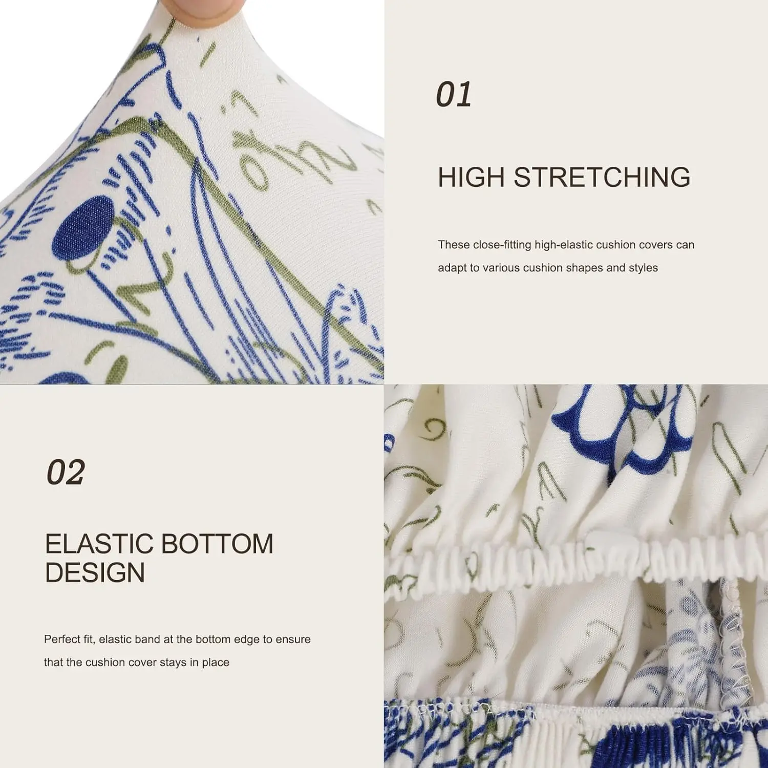 [HIGH STRETCH SOFA CUSHION COVER]Crafted from 92% polyester and 8% spandex.The cushion covers feature high elastic and excellent durability, which is soft, wrinkle-free and long lasting.Suitable for kinds of decoration styles, the printed pattern decorate your sofa cushion and makes the living room more colorful.