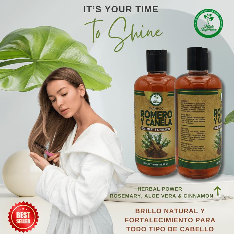 Recupera el brillo y la fuerza de tu cabello con nuestro Shampoo de Romero, Sábila y Canela.