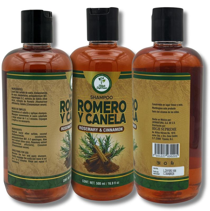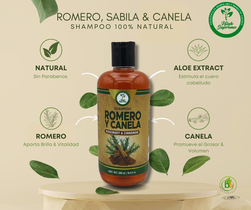 Shampoo Romero, Sábila & Canela – Nutre tu cabello con el poder de la naturaleza.