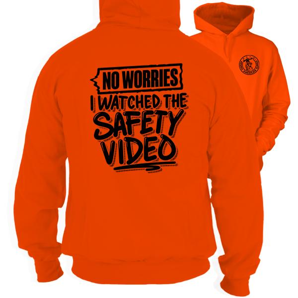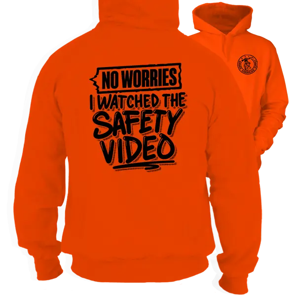 Watched The Safety Video - Safety Orange Hoodie Work Gear - Cotton Poly Premium Blend - Funny, Sarcastic Designs For Blue Collar Workers Fabric Menswear Polyester Sweatshirt Thick Top Day Layer Underwear Streetwear