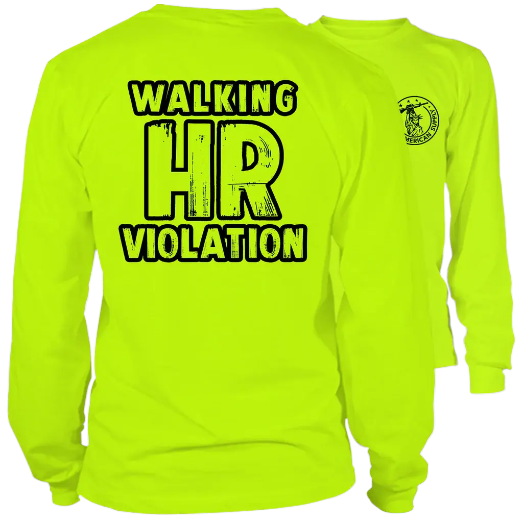 Walking HR Violation - Long Sleeve High Visibility Work T-Shirt - Cotton Poly Premium Blend - Funny, Sarcastic For Blue Collar Workers | Graphic Tees