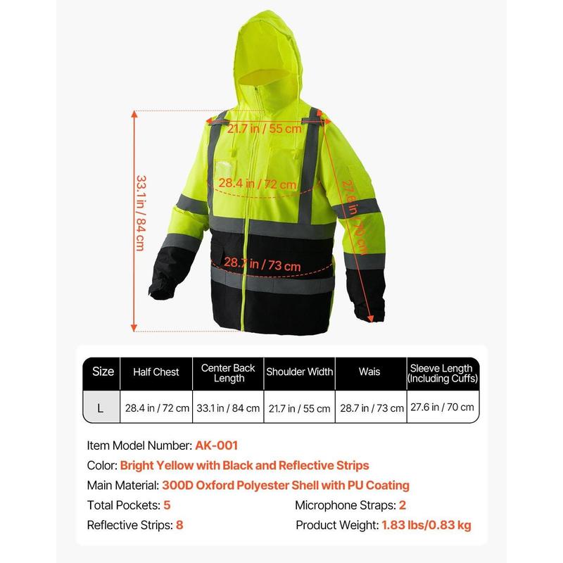 ·Outstanding Waterproof: This high visibility safety jacket is made from durable 300D Oxford polyester fabric with a PU coating. It is waterproof, windproof, tear-resistant, and oil-resistant, allowing you to face harsh weather or damp environments easily. Whether it's windy, rainy, or snowy, this jacket will always keep you dry and comfortable.