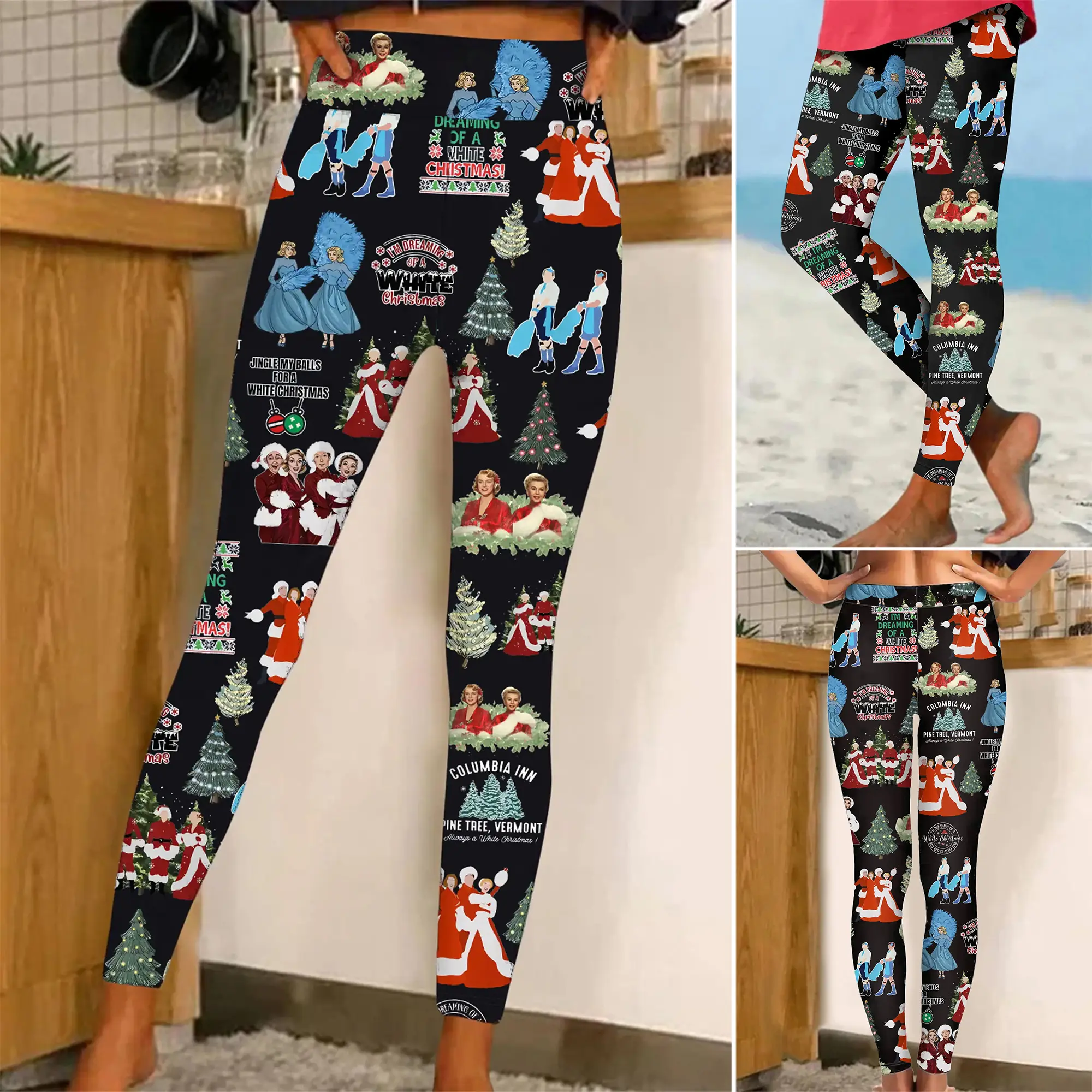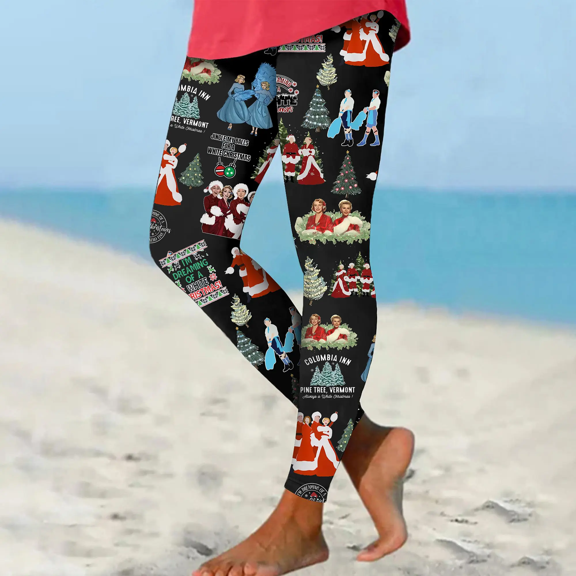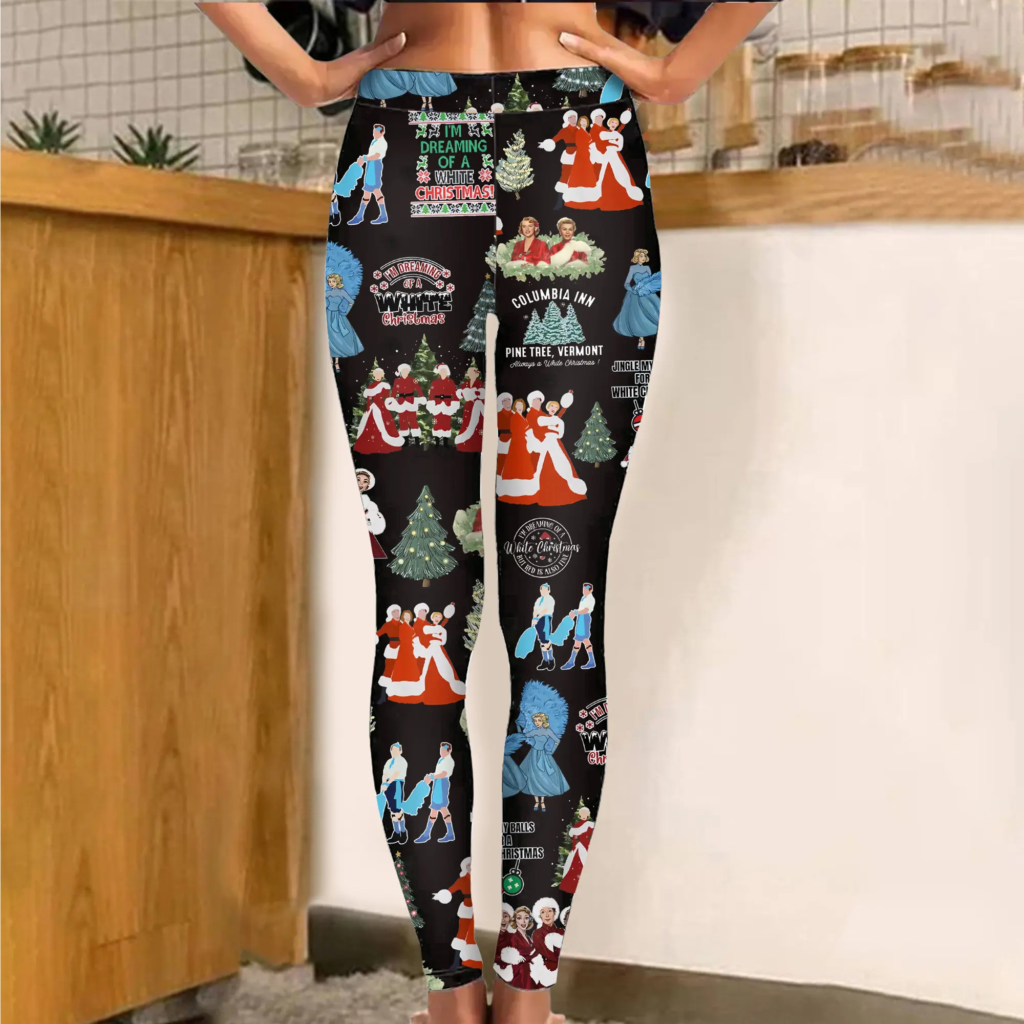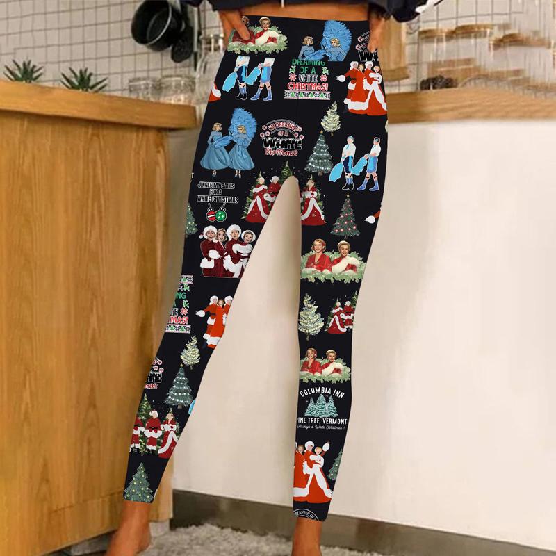 5. White Christmas High Waist Leggings For Women - SHESHOW
