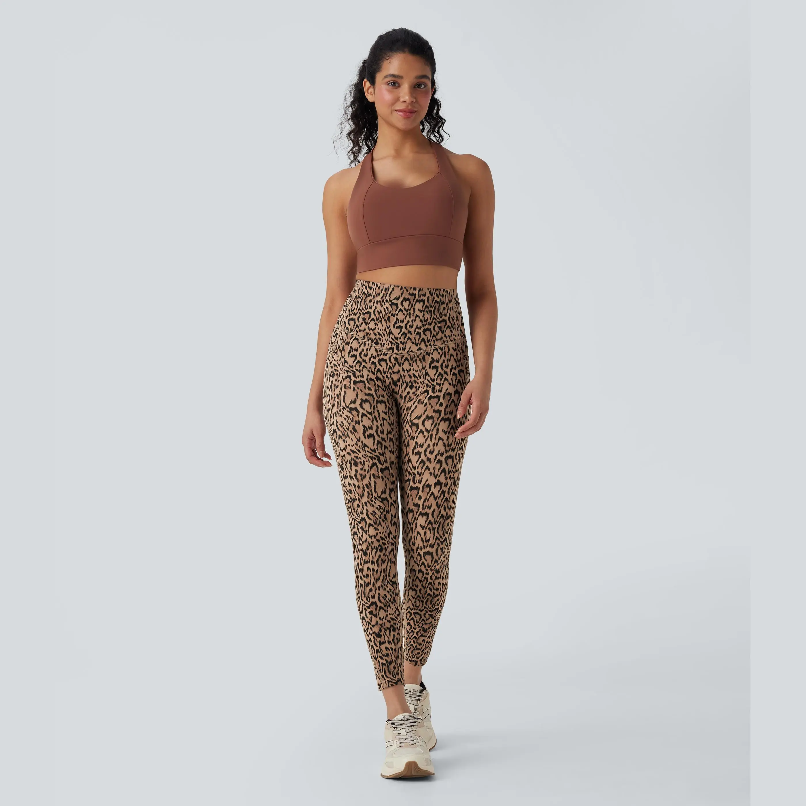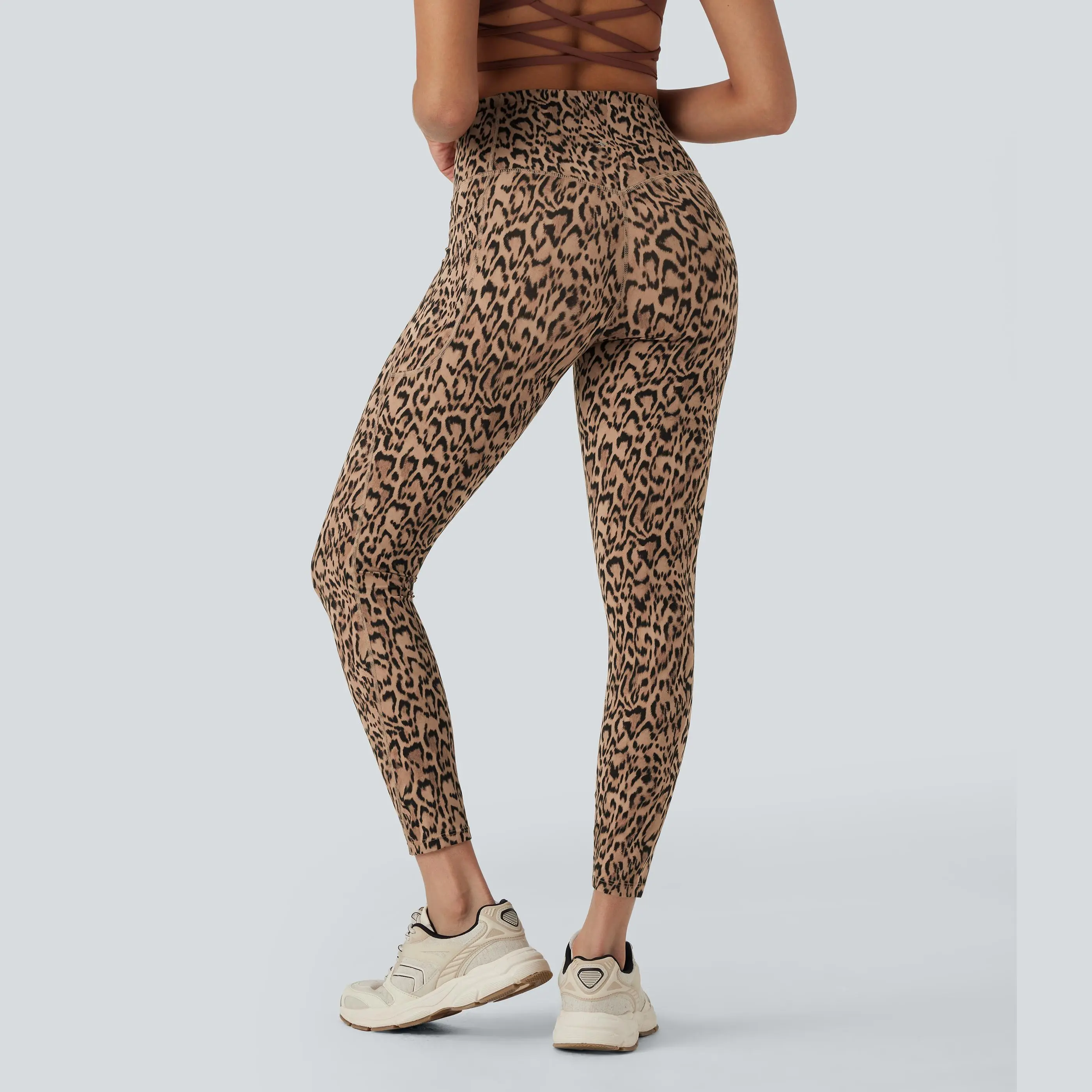 Absolutely love these Halara leopard leggings! They hold in your mom pooch and theyre a great fabric and not see through at all! The length is a little longer on me but I'm only 5'1. Definitely ordering more of the high waste.