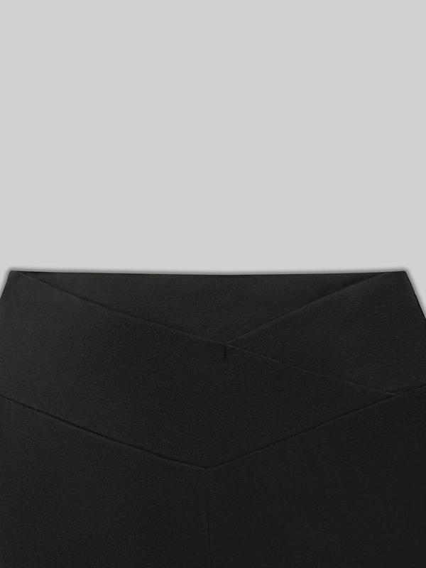 Women's Plain High Waist Rib Flares Leg Pants, Casual Overlap Bell Bottom Trousers, Ladies Summer Bottoms for Daily Wear, Casual Chic Trousers