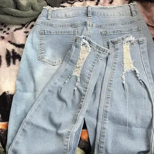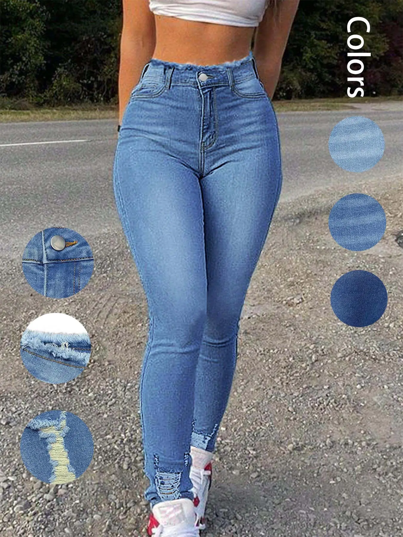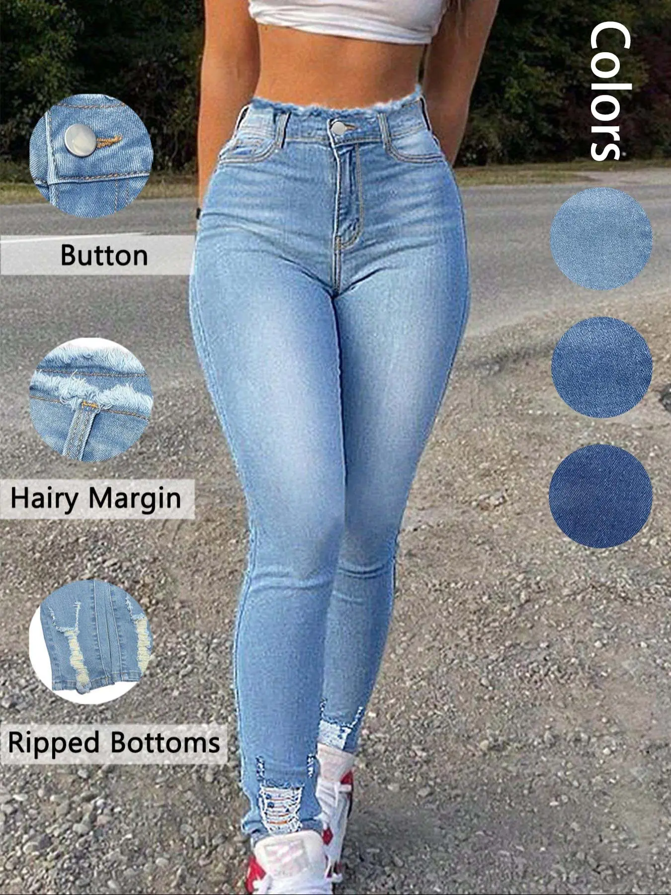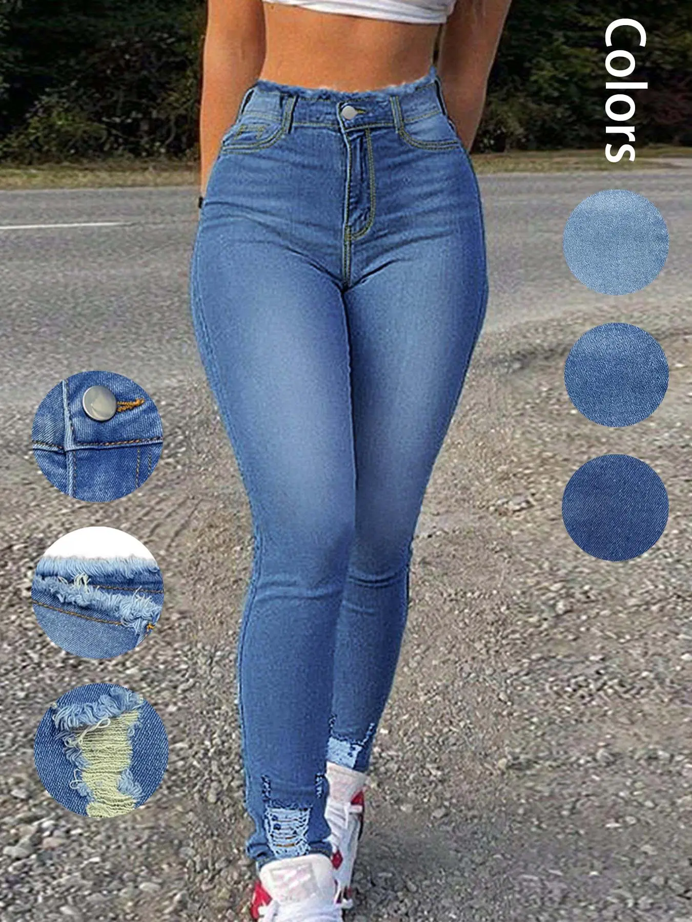 SO comfortable and flattering! The high waisted jeans are perfect for tummy control, and I love the slightly ripped effects at the waist and ankles. These jeans are my new favorites (I have them in light blue and these, a darker blue) and I can't wait to get the rest of the shades! 2 thumbs up!