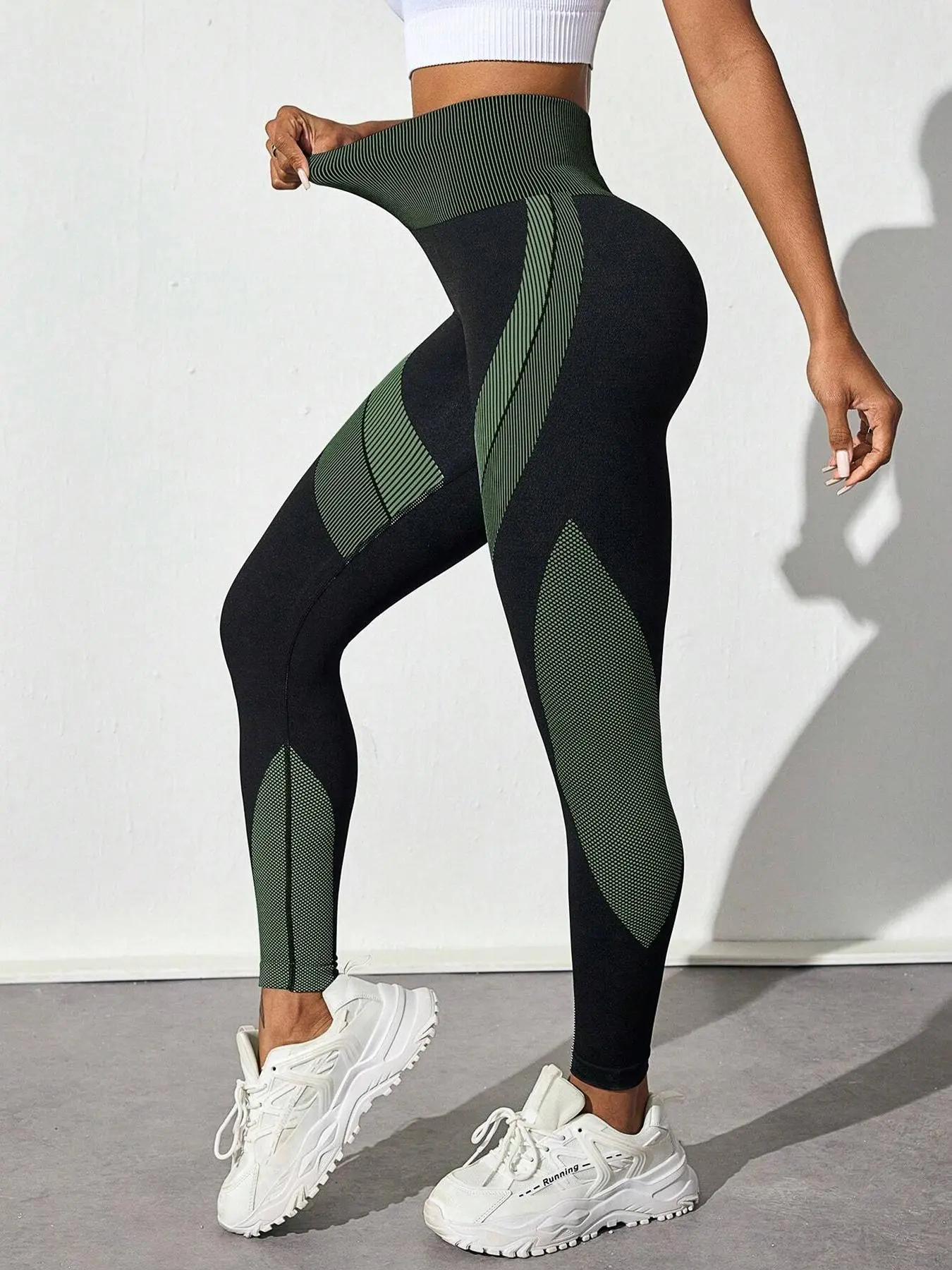 5. Women's Colorblock Stripe Pattern High Waist Sports Stretchy Leggings, High Stretch Casual Comfy Breathable Seamless Skinny Pants for Yoga Gym Workout Running, Ladies Sportswear for All Seasons