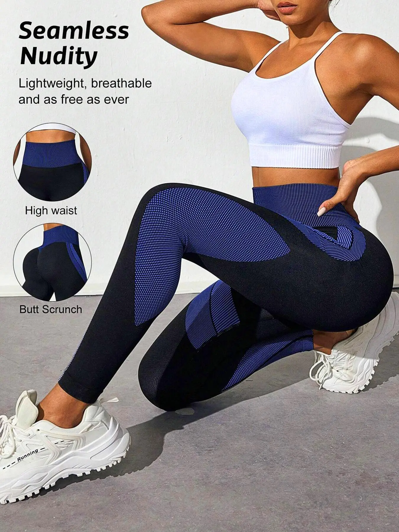 Women's Colorblock Stripe Pattern High Waist Sports Stretchy Leggings, High Stretch Casual Comfy Breathable Seamless Skinny Pants for Yoga Gym Workout Running, Ladies Sportswear for All Seasons