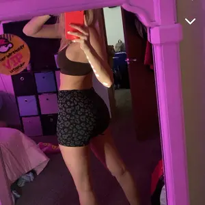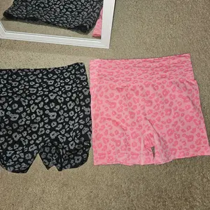 Buttlifting highwaist leopard print shorts. I love them. 3 pack. Doesnāt roll down when you bend. Highly recommend these shorts.