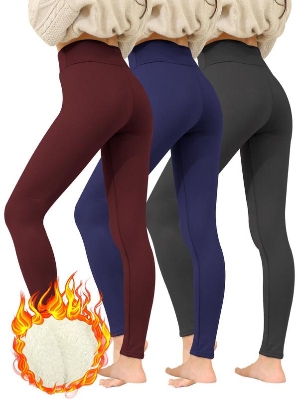 Women's Solid High Waist Thermal Lined Leggings, Casual Comfy Warm Skinny Pants for Daily Wear, Ladies Bottoms for Winter