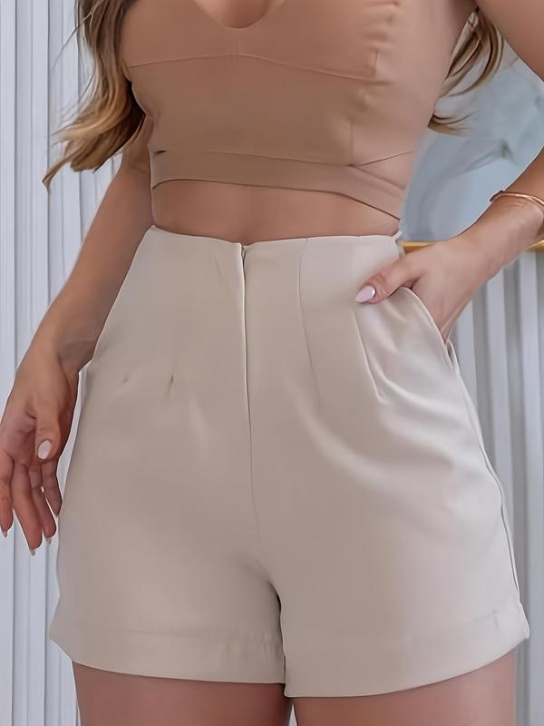 Women's Solid Color High Waist Shorts, Casual Comfy Shorts for Daily Wear, Ladies Bottoms for Summer