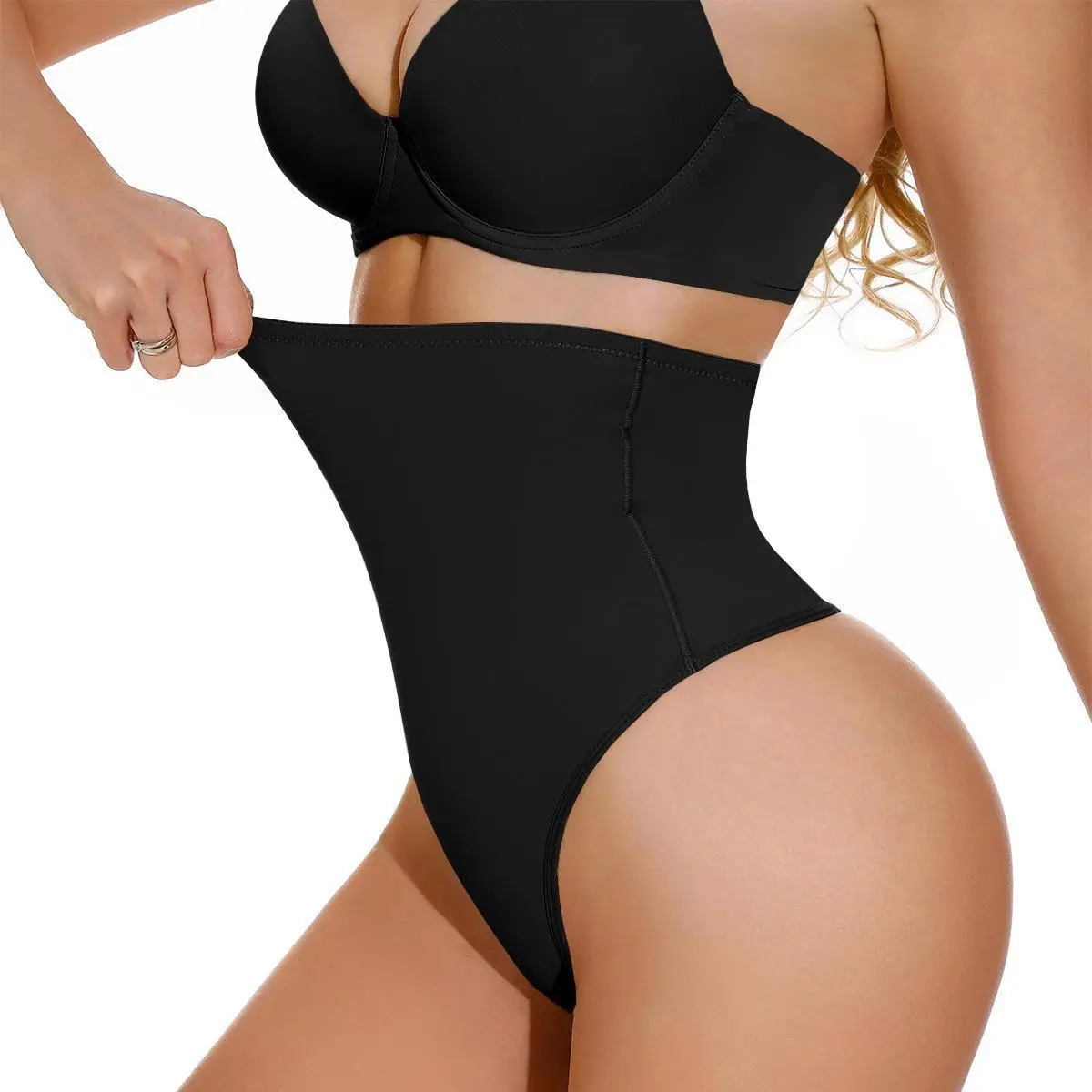 ·Elastic Fabric: The thong body shaper for women is made of 90% Polyamide and 10% Elastane. It's soft, breathable, and adept at moisture management, ensuring a dry and comfortable fit throughout the day. Its stretchable nature adapts flawlessly to various body types, promising a seamless wear experience that enhances your natural curves with ease.
