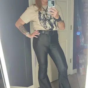 Love these pants, super long so I’m gonna have to cut the bottoms even with boots cause I’m 5’ 3 1/2” lol. But I love the way they fit.