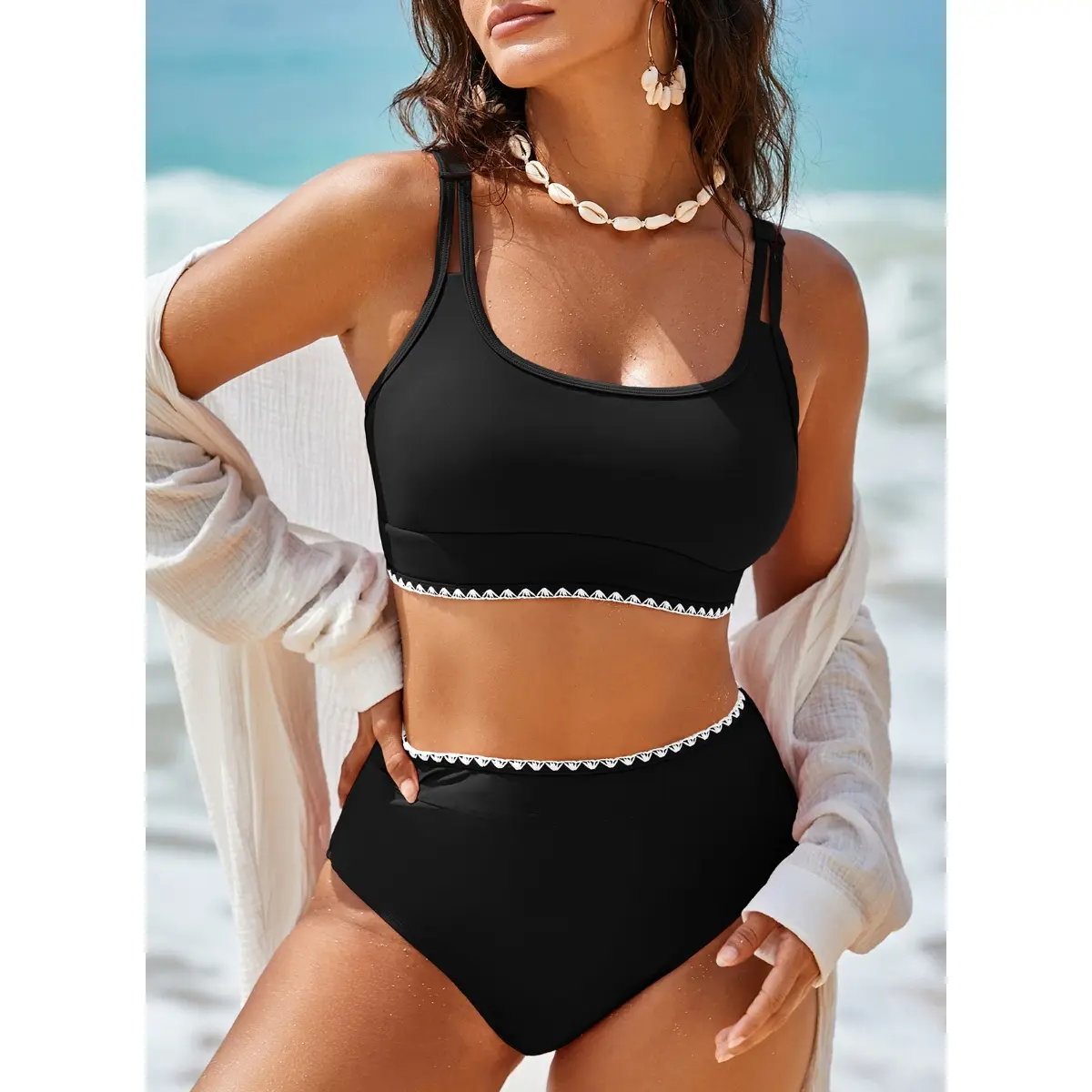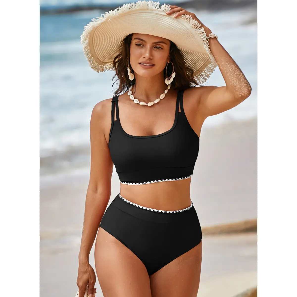 Super flattering high wasted bikini! The back feels secure and very flattering for my body! It covers what needs to be covered but will still allow me to get a tan!