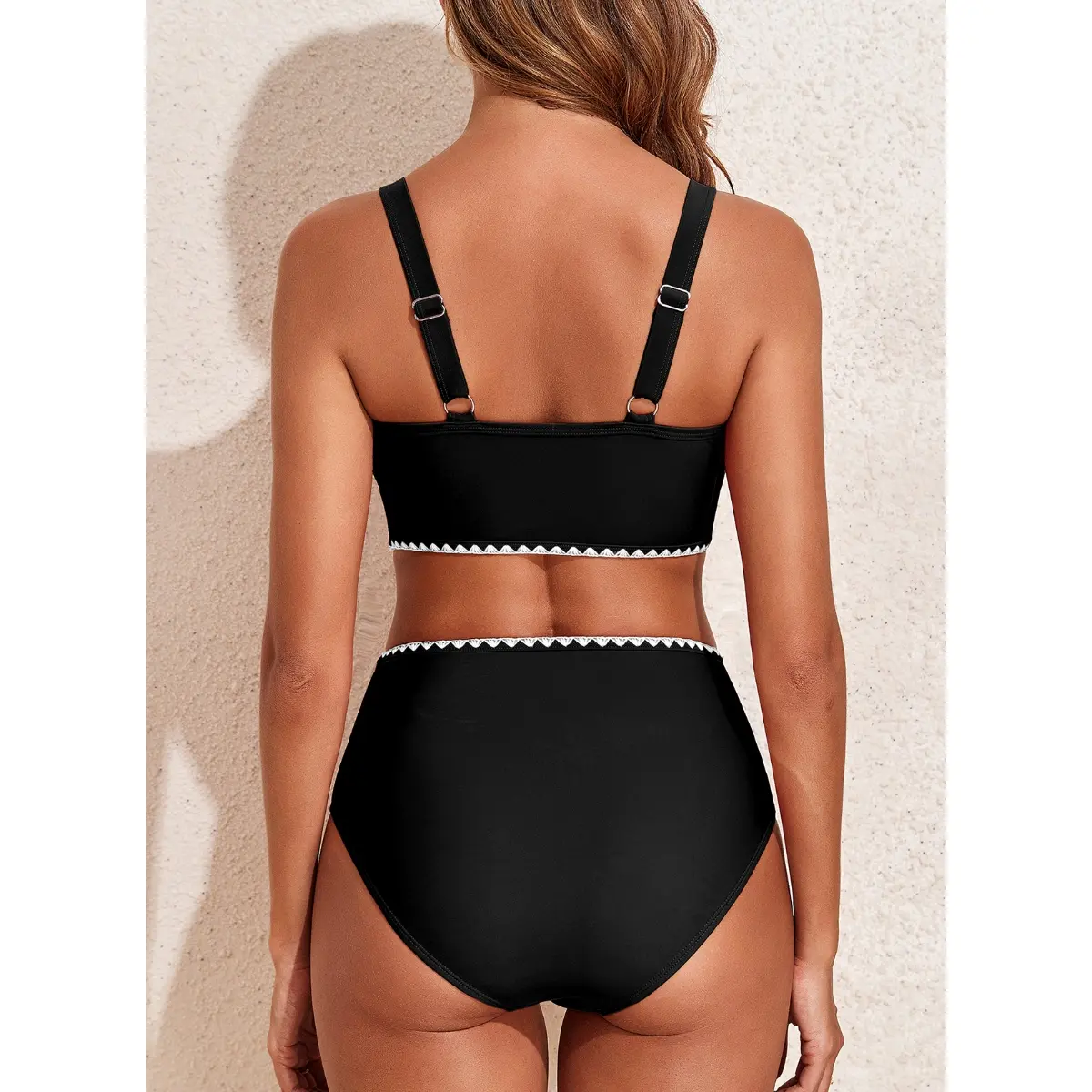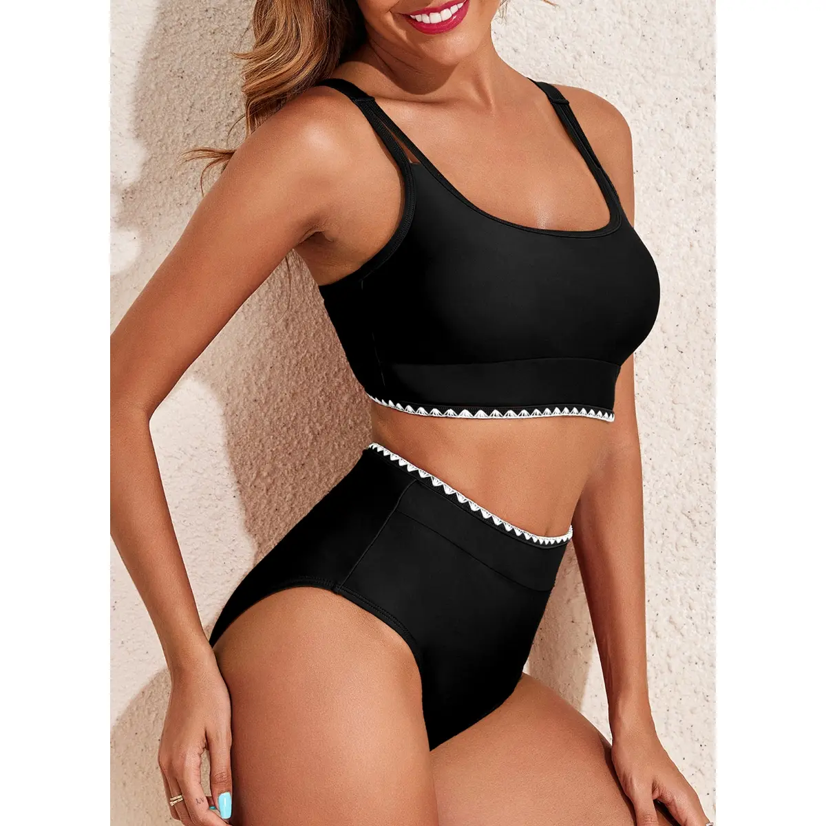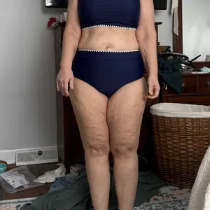 Very cute high waisted two piece swimsuit true to size just as expected perfect fit it’s gonna look great on thebeach in La Romana Dominican Republic can’t wait