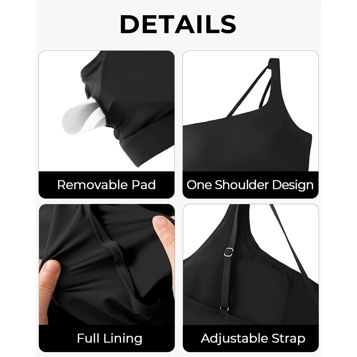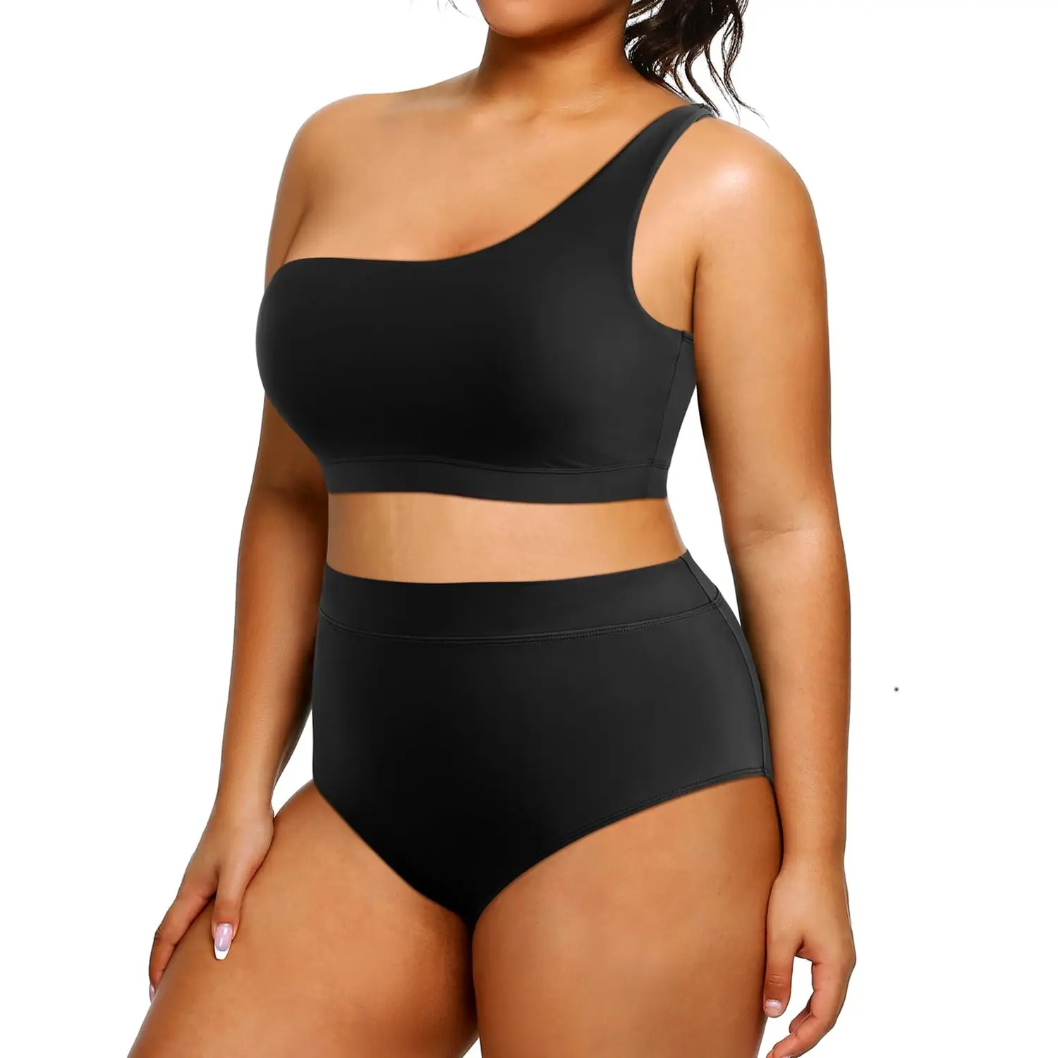 ·Plus Size Two Piece Swimsuits: This one shoulder bikini top features a removable soft padded bra and adjustable straps that are both fit and comfortable.