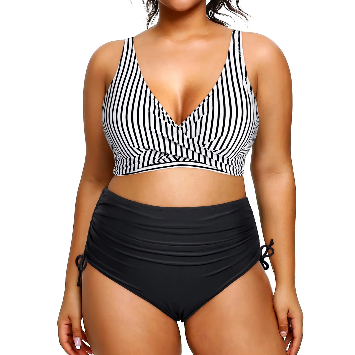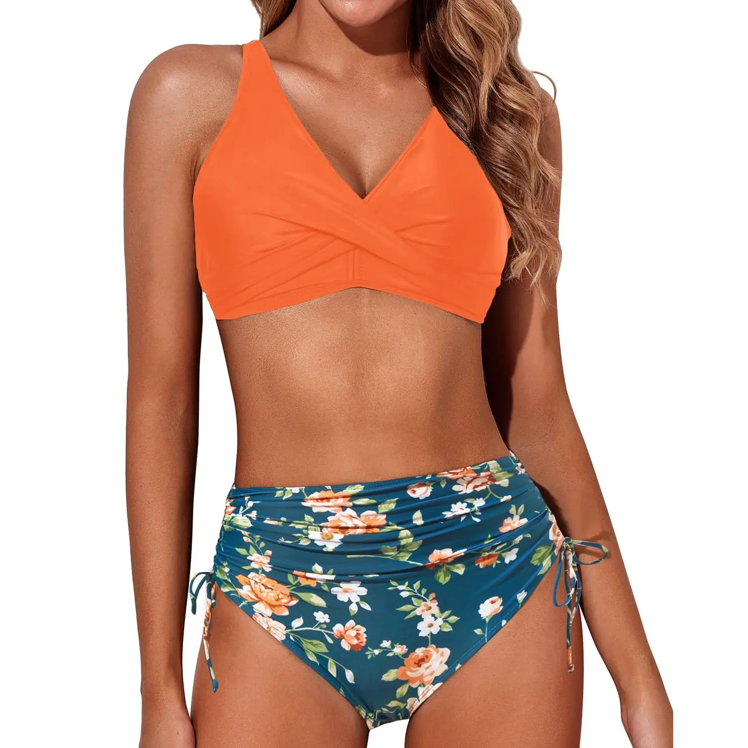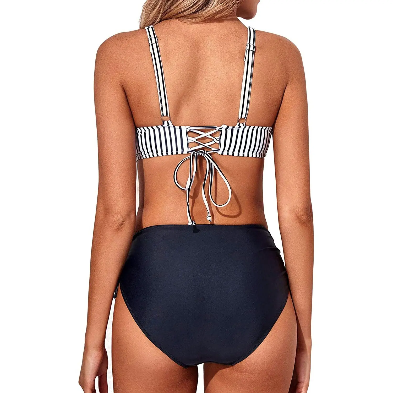·Cute bikini swimsuits are designed with a twist front and lace up back. A push up removable padded bra and adjustable shoulder straps provide maximum support. The high waisted bikini bottom with ruched detail offers excellent tummy control. Tie side bathing suits with drawstrings allow you to freely adjust the tightness.