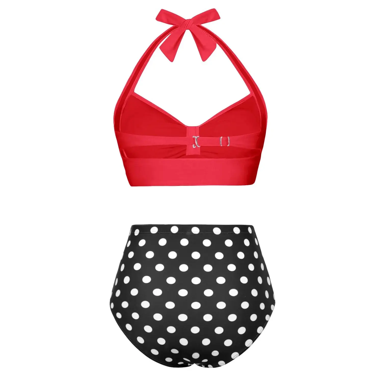 ·This vintage swimsuit for women includes a push-up halter bikini top with removable padded cups and a hook closure at the back, offering good support. The ruched twist at the front with a bow tie is sweet and simple.