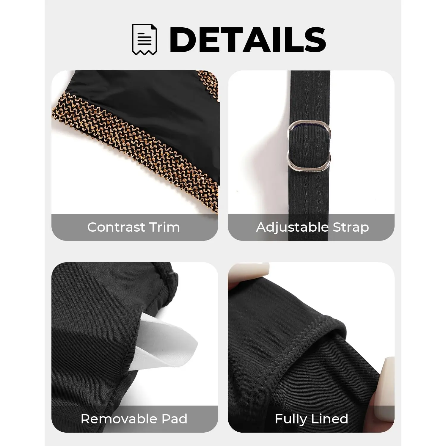 ·One Shoulder Bikini Set: This chic one-shoulder bikini top features a soft, removable push-up padded bra and an adjustable shoulder strap for a perfect fit.