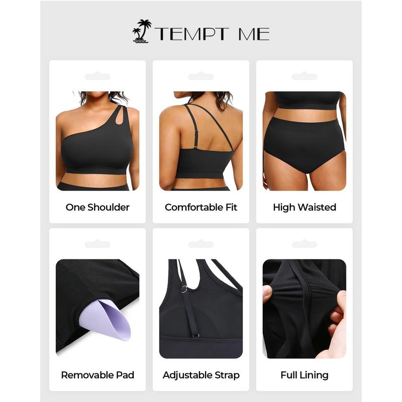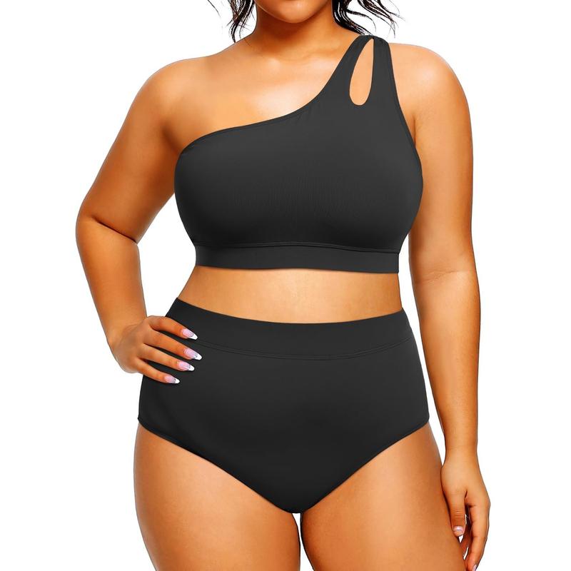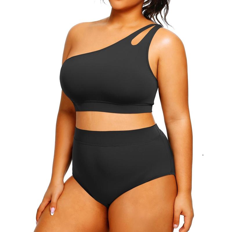 Plus Size High Waisted Bikini Set for Women One Shoulder Swimsuits
