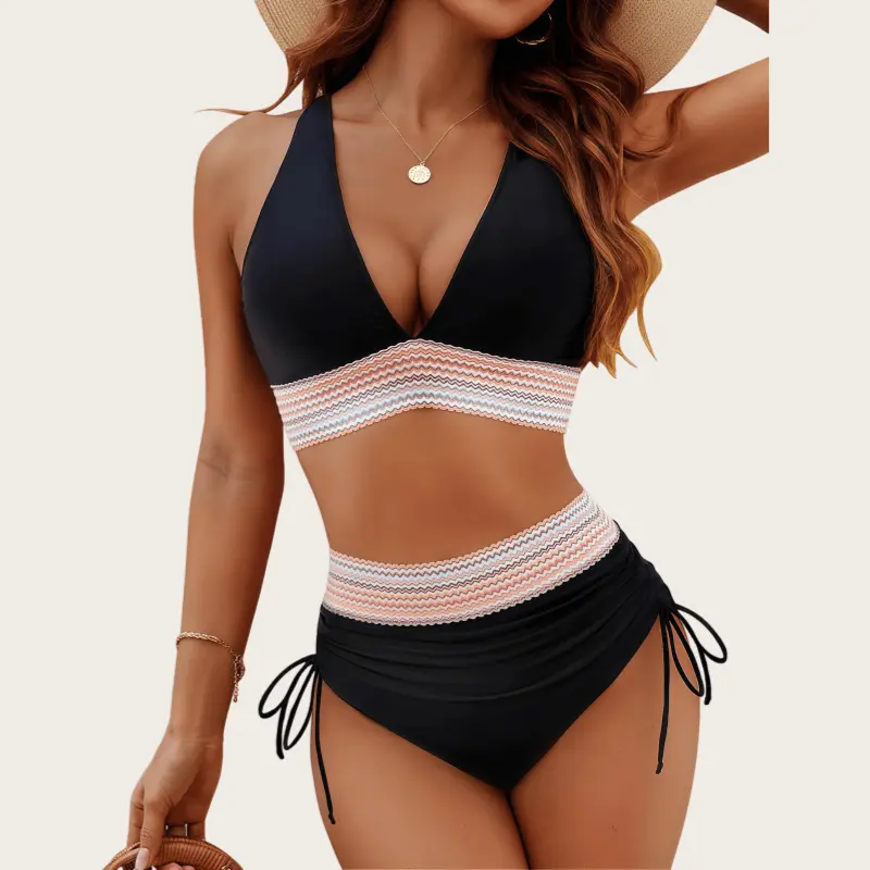 5. Women High Waisted Bikini Sets Swimsuits Color Block Two Piece Drawstring Bathing Suit,Swimwear Stylish Bathing Suit Beachwear