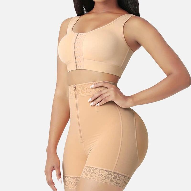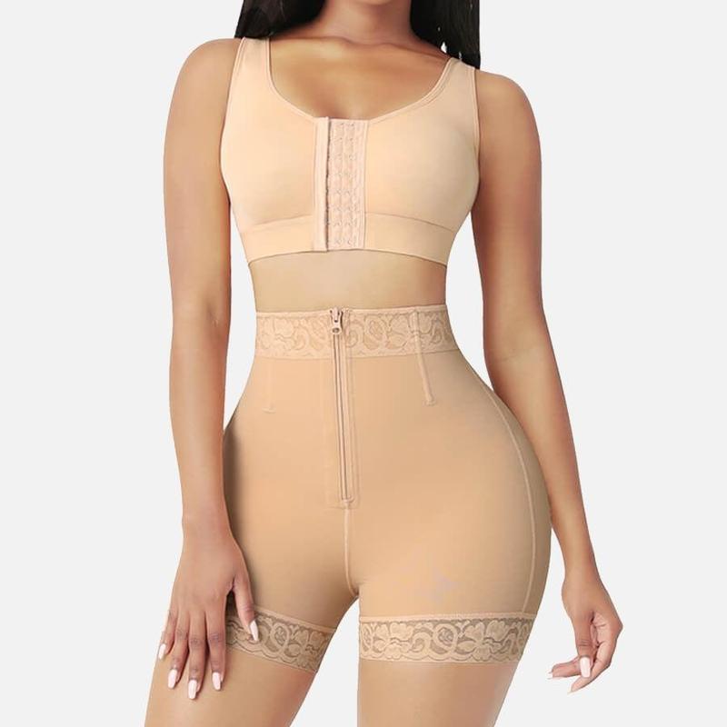 *3. Zip+hook-and-eye closures on the front are easy to wear.