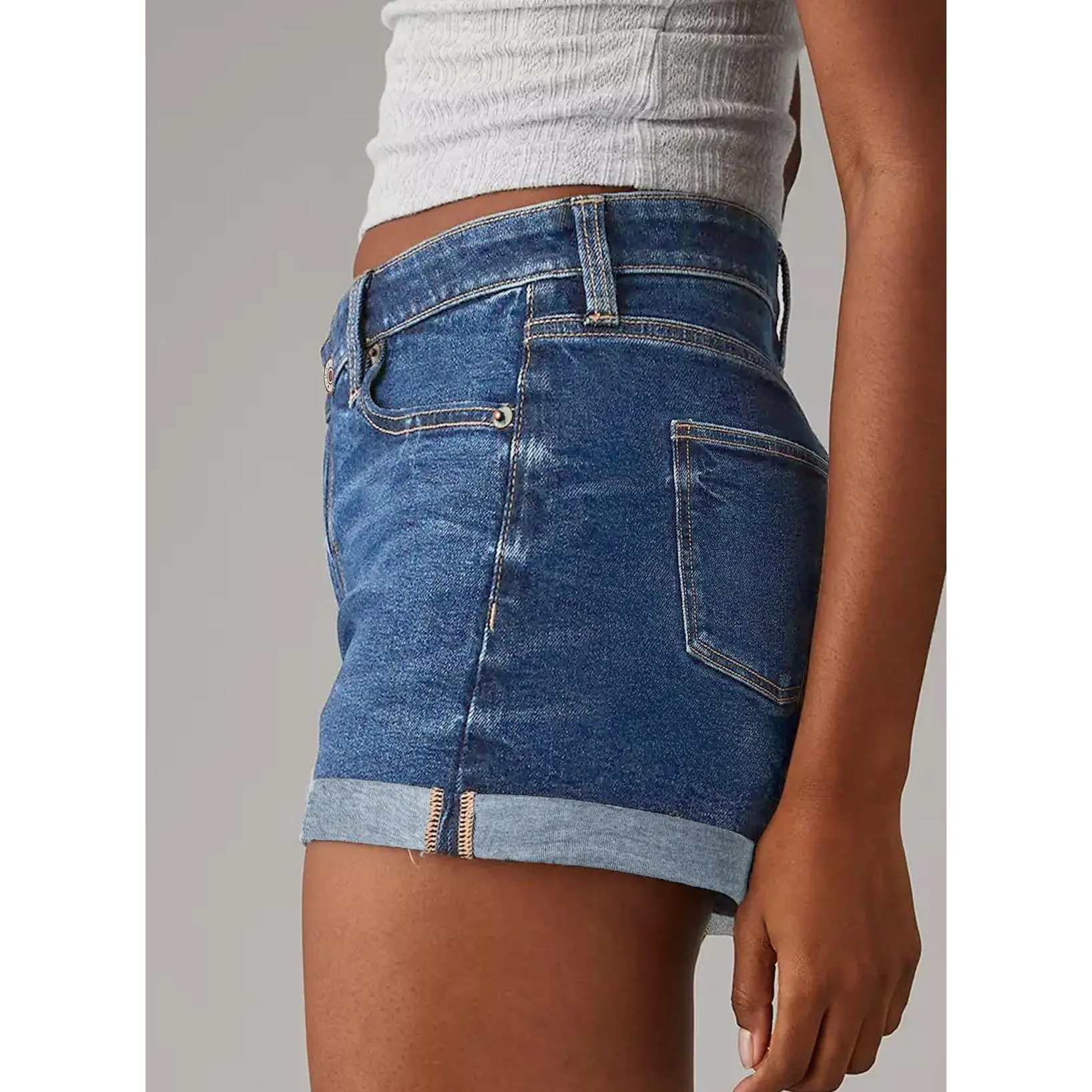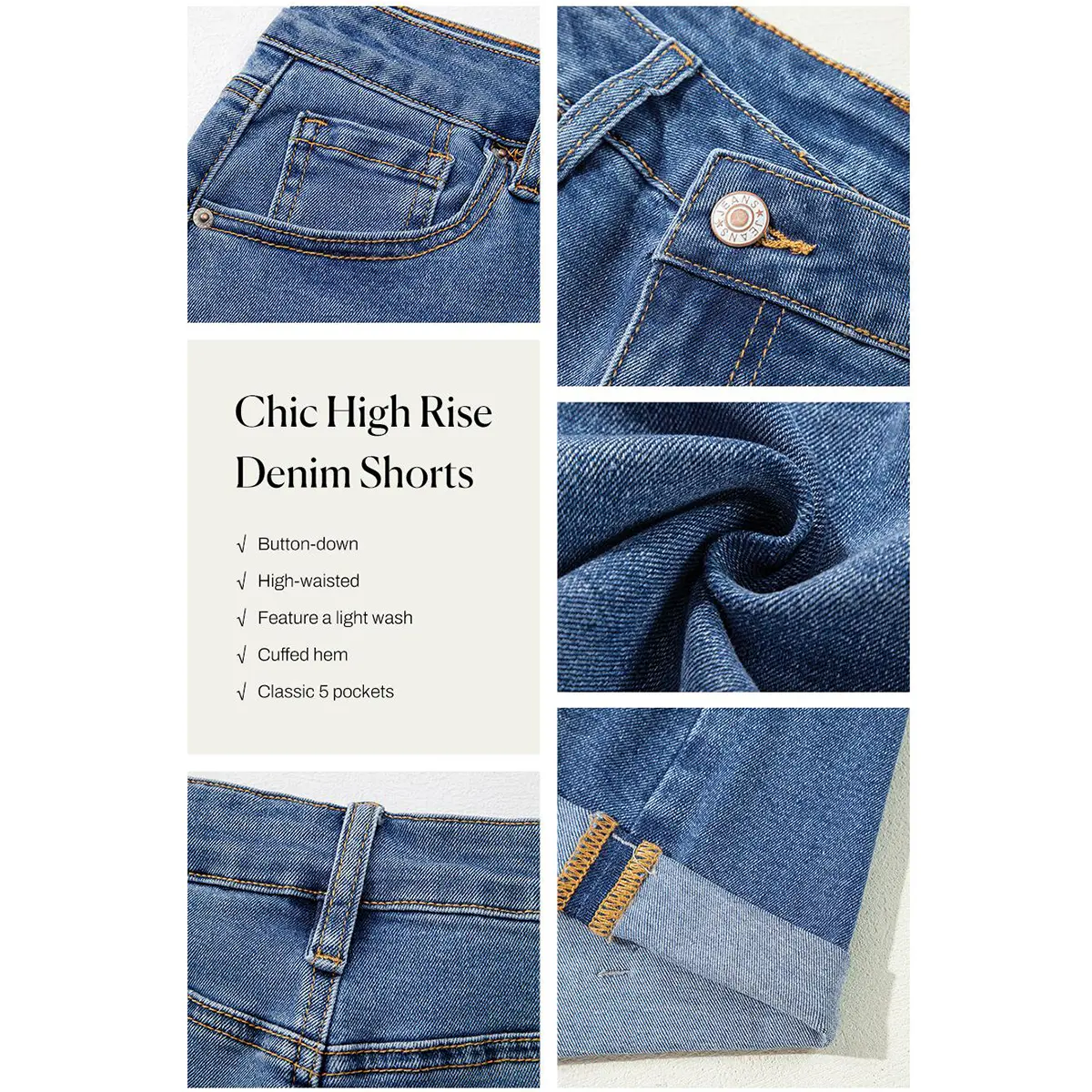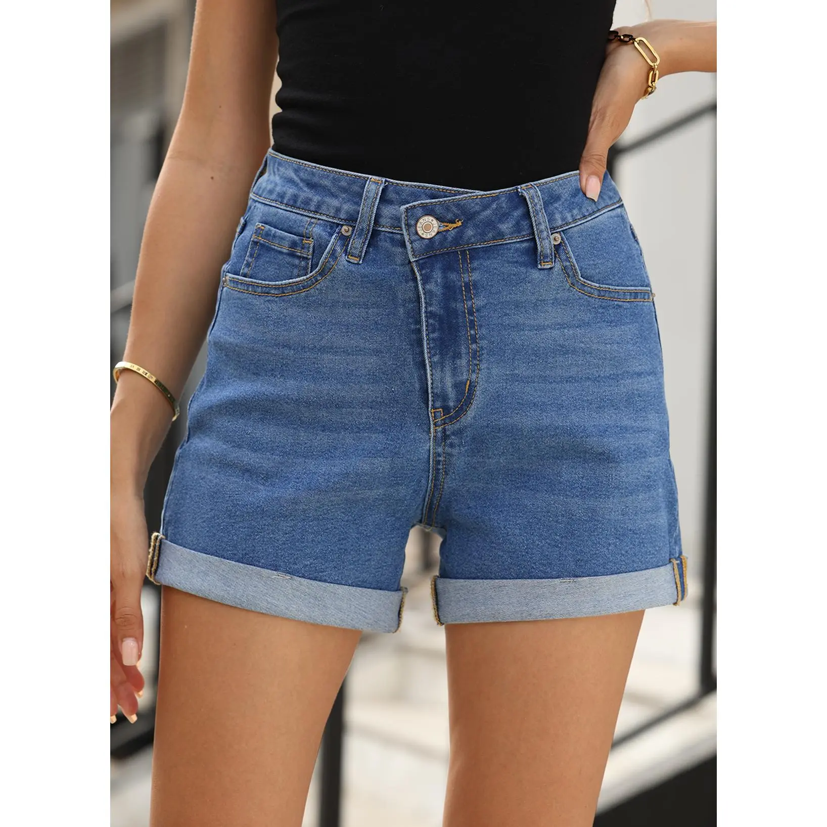 Features: Trendy jean shorts features crossover, high waisted, rolled hem, zipper and basic five pockets design. The rolled hem detailing on these shorts add a touch of laid-back charm to your outfit, striking a balance between fashion and casual