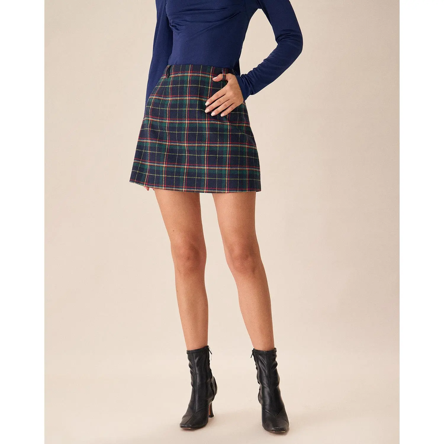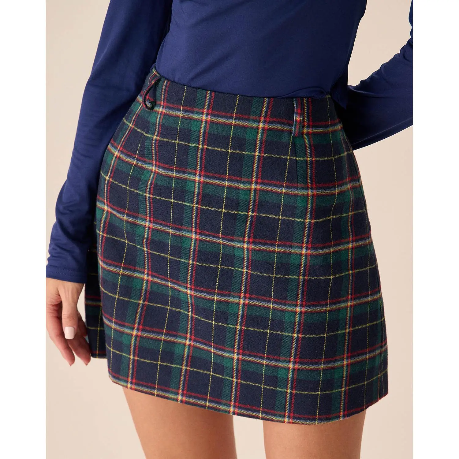 Description: Crafted from a comfortable, lightweight fabric, this skirt features a classic plaid pattern in rich green hues, perfect for adding a pop of color to any outfit. The high-waisted design creates a flattering silhouette, while the mini length adds a playful touch.