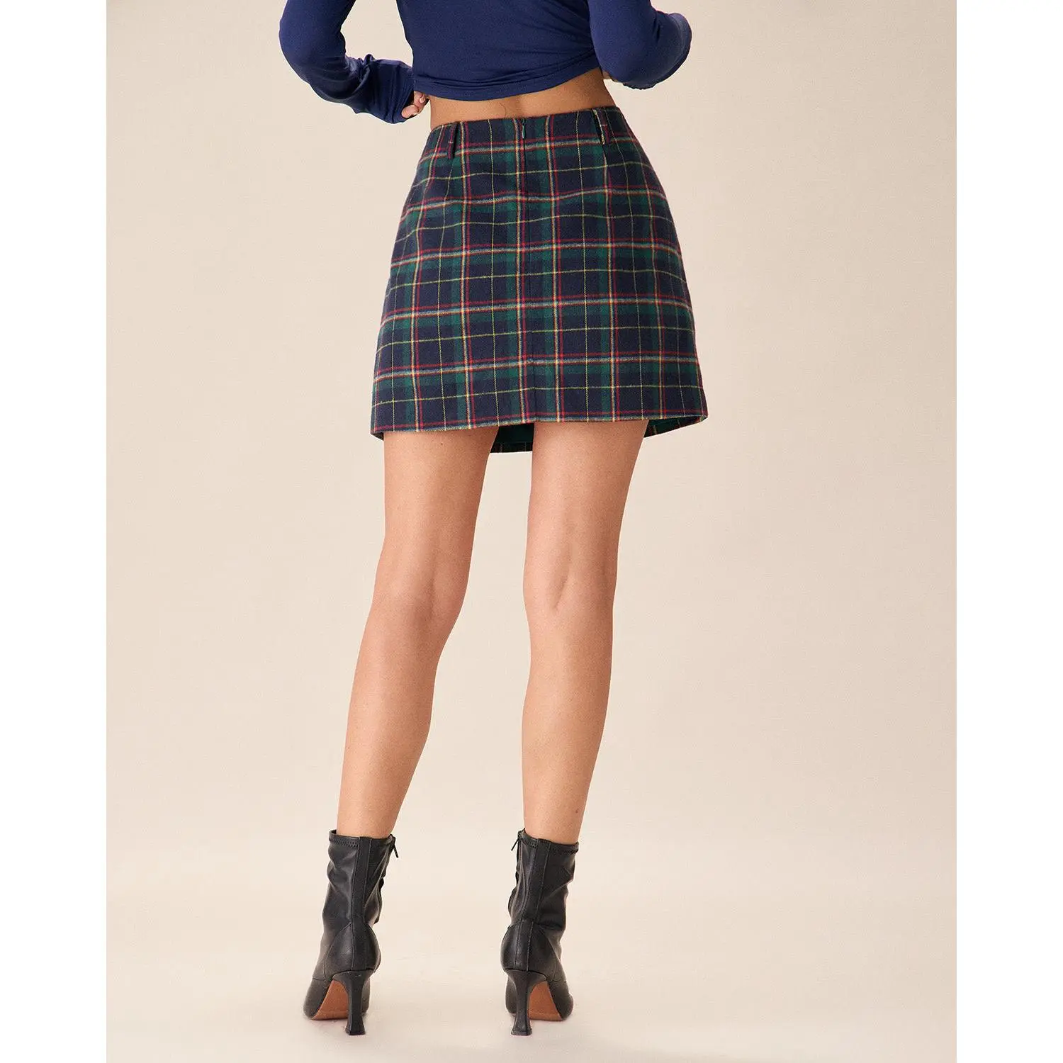 5. Green Plaid High-waisted Mini Skirt