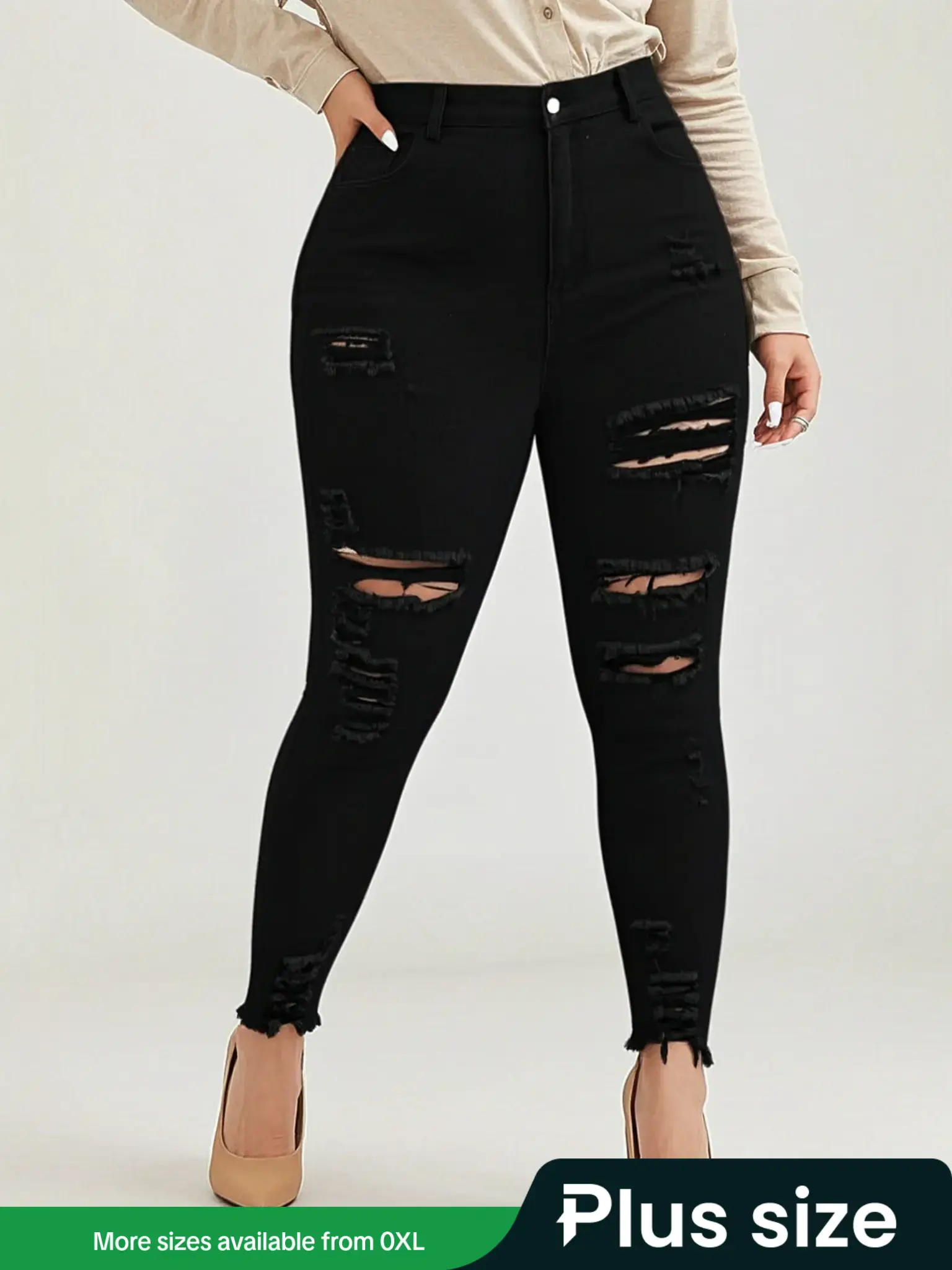 5. High Waist Ripped Denim Jeans, Stretchy Plus Size Skinny Fit Pants, Casual Fashion for Women, Comfortable Daily Wear