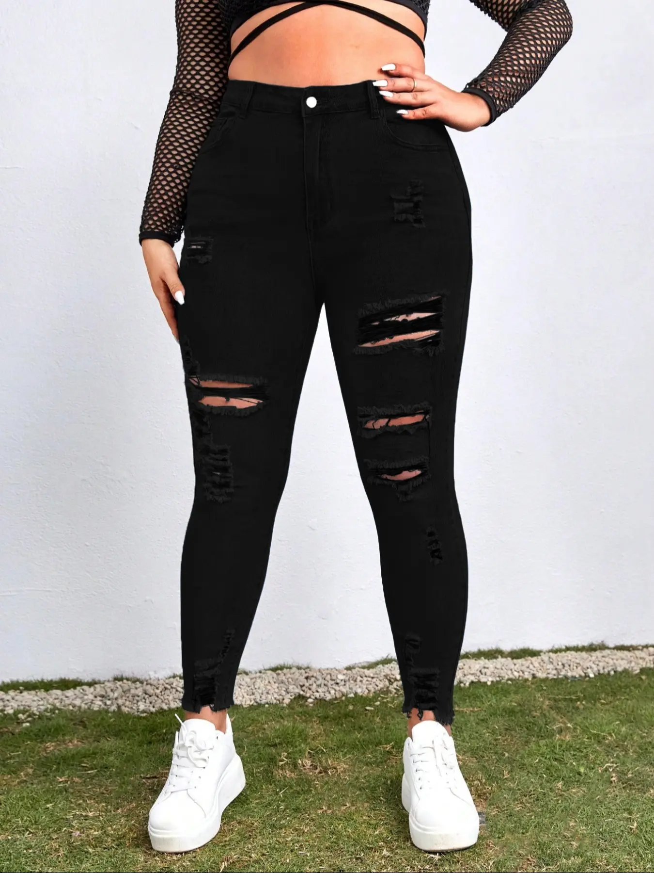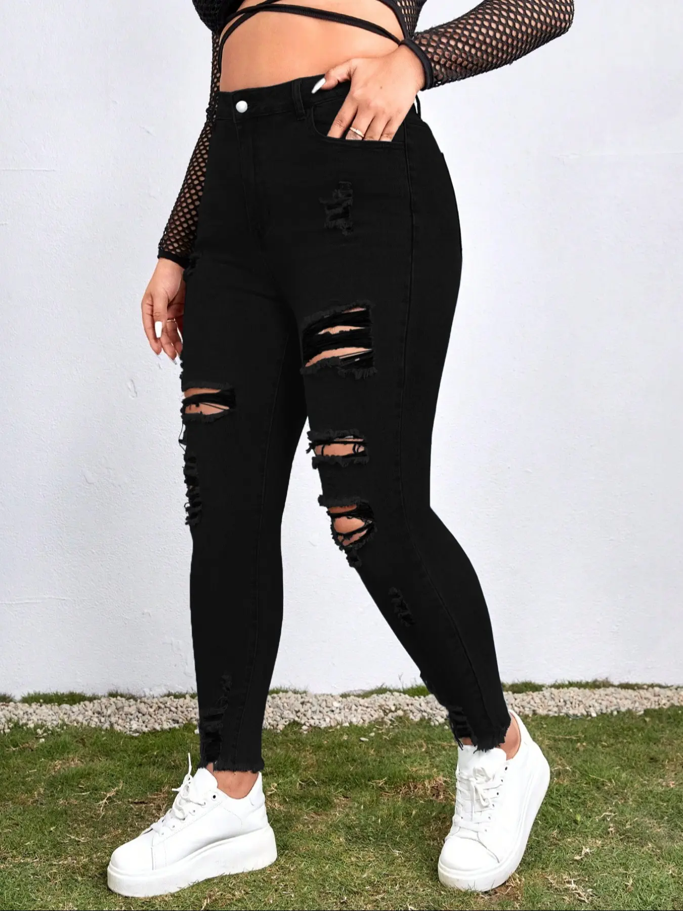 #PlusSizeDenim #DistressedJeans #CurvyStyle #StreetChic