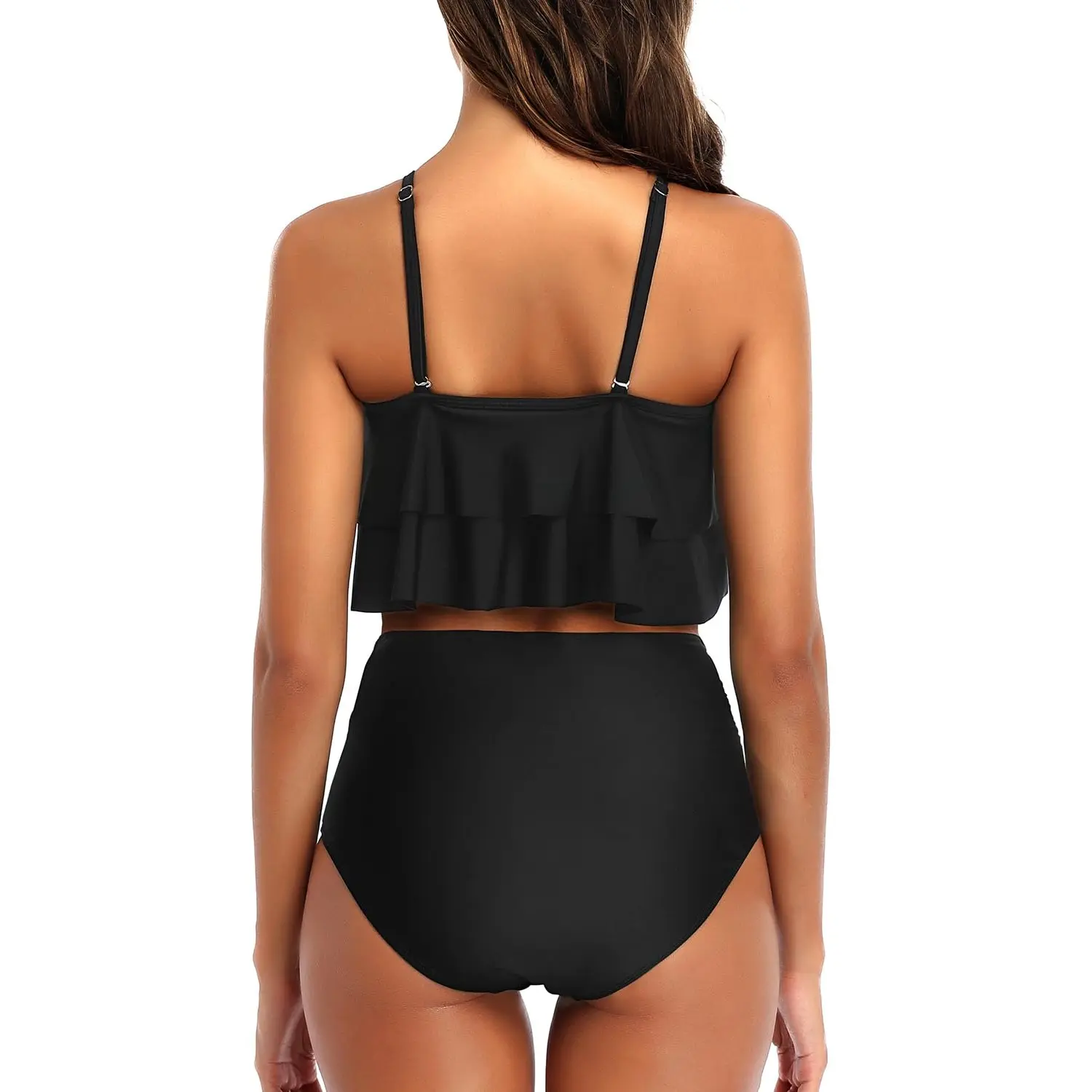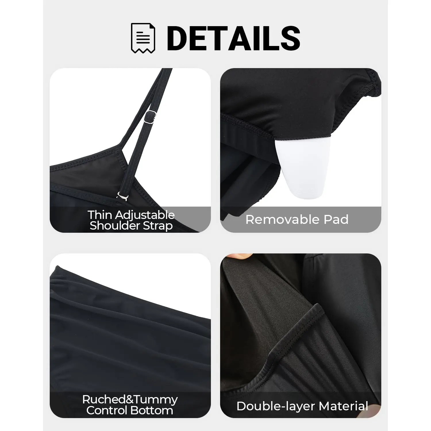 Two Piece Bikini Set: Deep crew neckline and soft adjustable spaghetti straps bikini set. Removable padded push up bras for good support in the bust area.