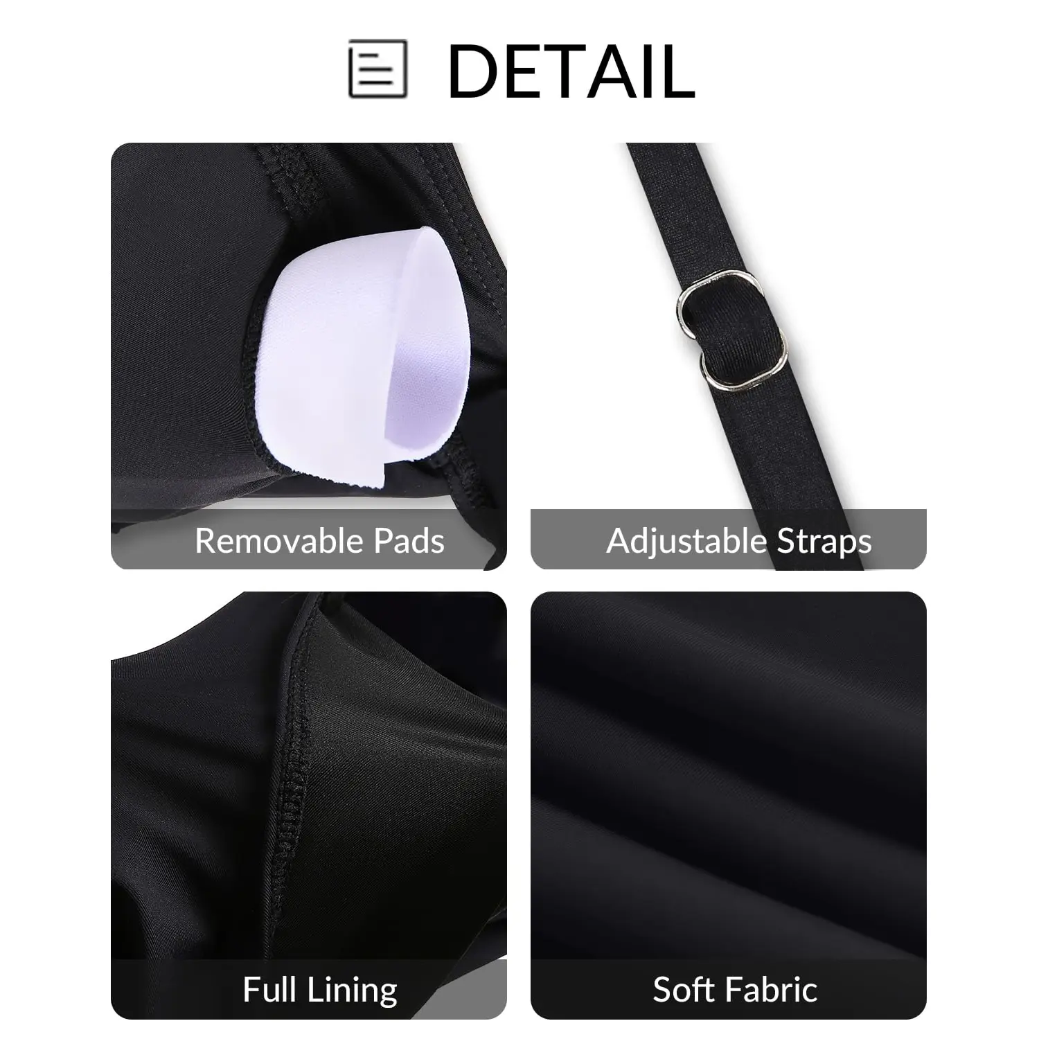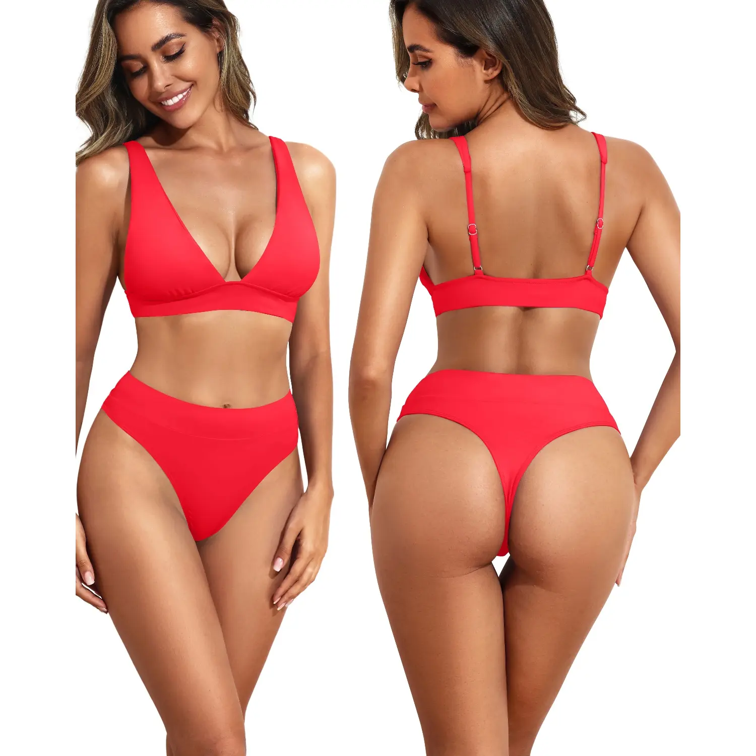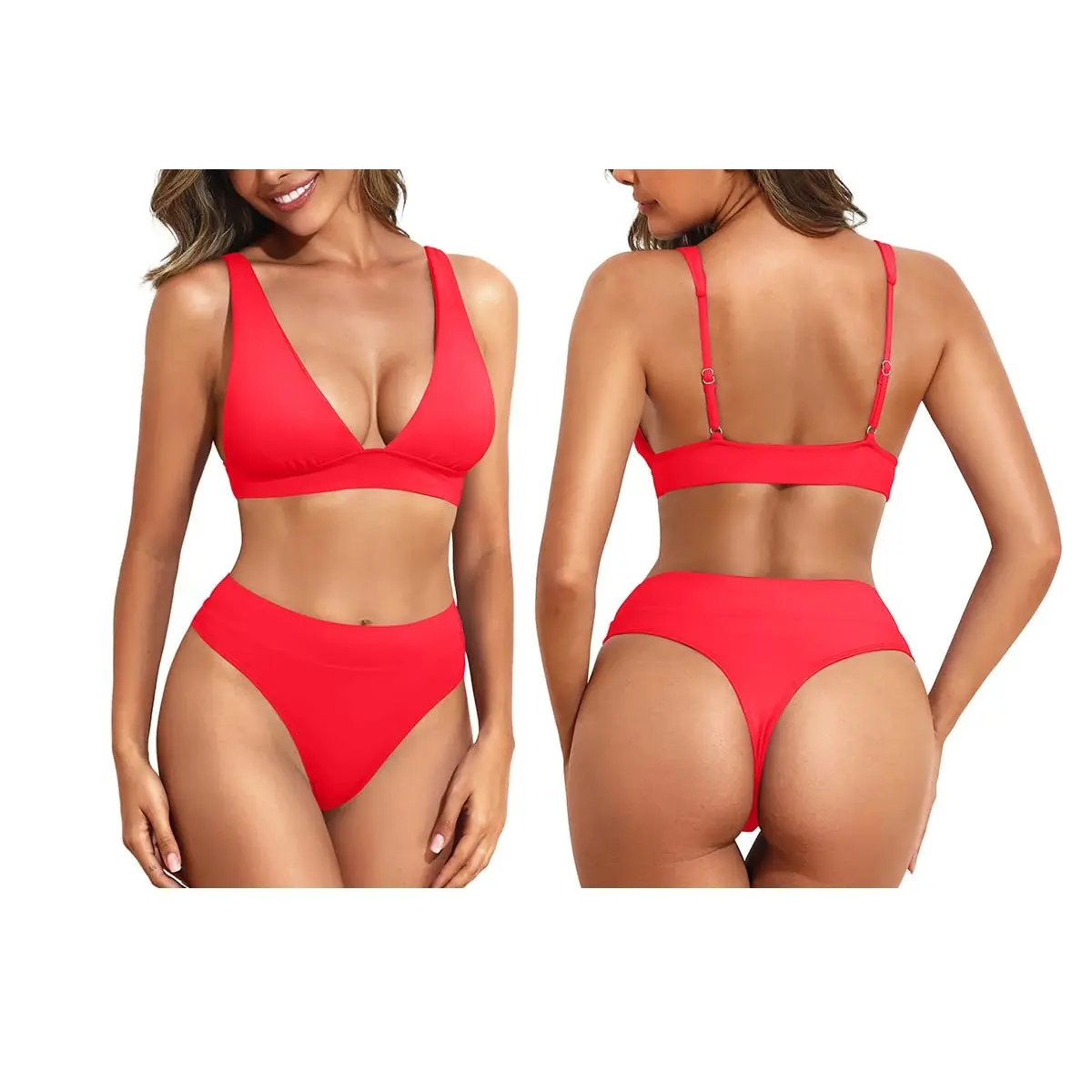 ·Triangle Bikini: V Neck Triangle Bikini Top with a wide underband and adjustable straps provide a comfortable fit and a good push up for the breast.